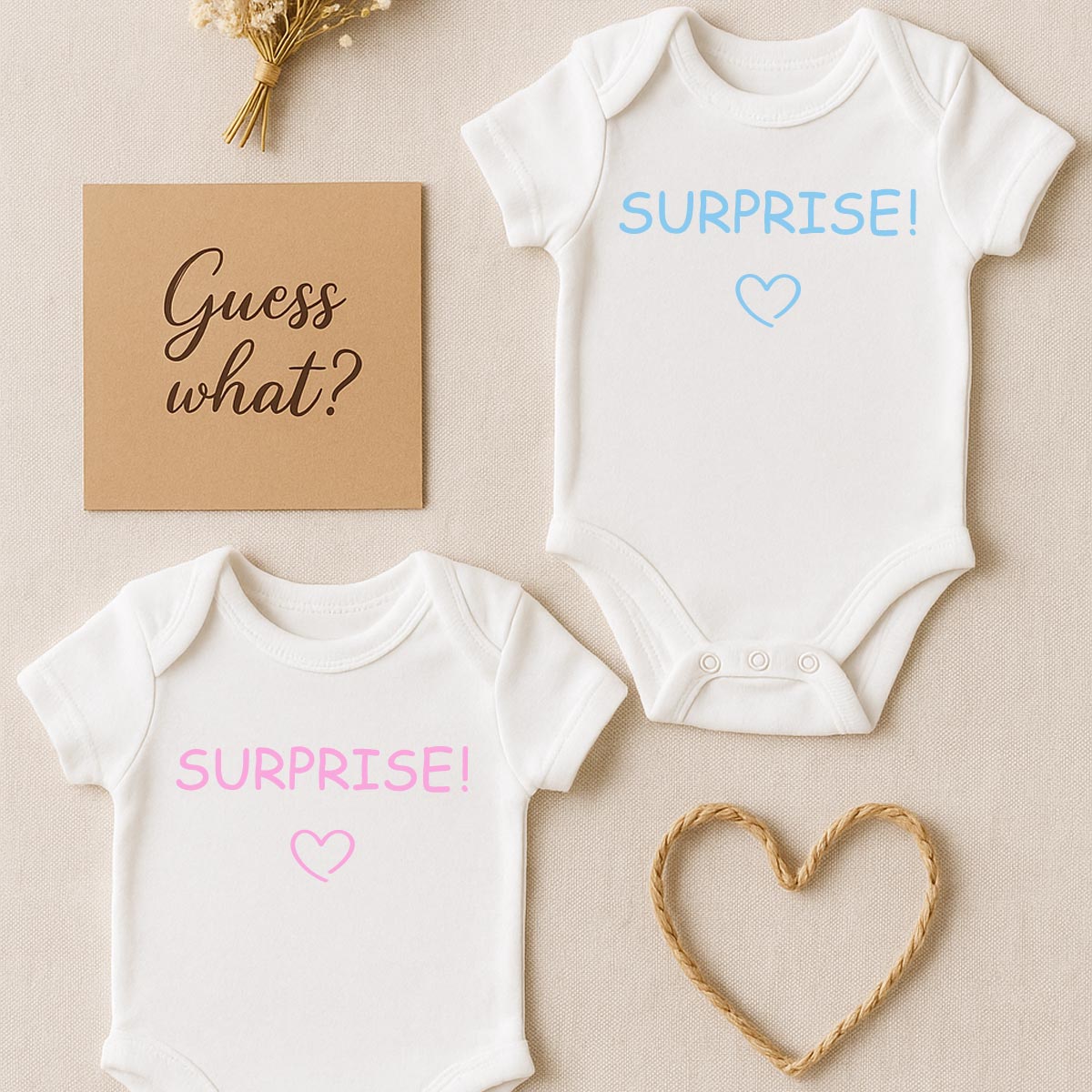 ✨ Baby Body "SURPRISE!" oder "ÜBERRASCHUNG!" – liebevolle Schwangerschaftsverkündung mit Herz