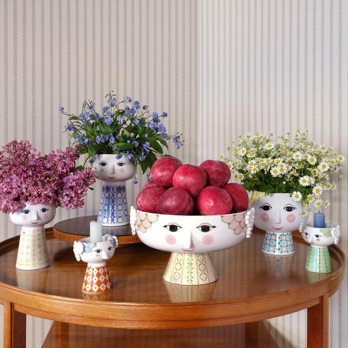 Die Persönlichkeit des Künstlers Bjørn Wiinblad kommt in der einzigartigen Eva zum Vorschein, die uns ermutigt, unseren eigenen Stil und unsere Persönlichkeit in der Inneneinrichtung mit bunten Blumensträußen, exotischen Pflanzen, Kerzen und kreativen Dekorationen zum Ausdruck zu bringen. Das wunderschöne Gesicht der Schale kommt besonders gut mit einer Frisur aus Obst, Trocken- oder Frischblumen zur Geltung. Gerade als Geschenk zum Geburtstag, zu Ostern oder zu Muttertag eignet sich das einzigartige Stück besonders gut.