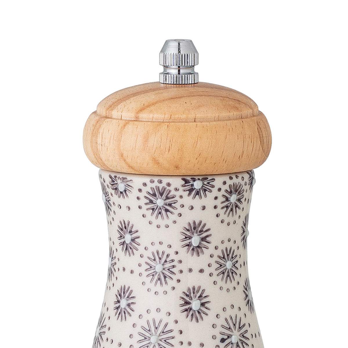 Die Elsa Salz- und Pfeffermühle von Bloomingville ist ein wunderschönes Set mit mediterranem Flair. Das Salz-Pfeffer-Set besteht aus Steingut mit grauen Motiven, die mit dem hellen Farbton von Gummibaumholz kontrastieren. Das Salz-Pfeffer-Set ist eine perfekte Ergänzung für Ihre Küche, wenn Sie etwas suchen, das nicht nur funktional ist, sondern auch gut aussieht.