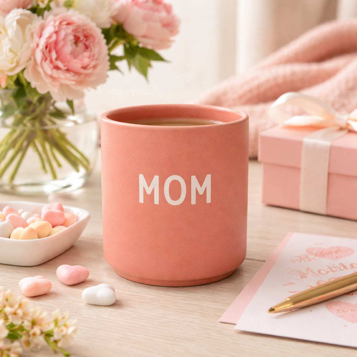 Ein stilvolles Dankeschön für die beste Mama! Der 'MOM'-Becher in der sanften Erdfarbe Nude strahlt Wärme und Ruhe aus. Gefertigt aus feinstem Bone China Porzellan und veredelt mit einer ultramatten Glasur, besticht dieser Becher durch seine minimalistische Form und die besonders hochwertige Haptik. Das eingravierte Wort 'MOM' macht diesen Becher zu einem persönlichen Begleiter für den täglichen Kaffee oder Tee.