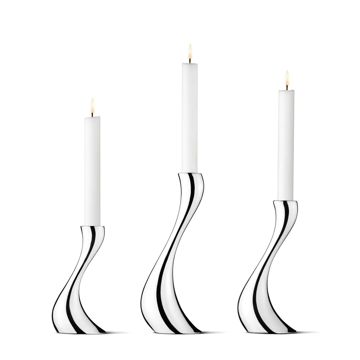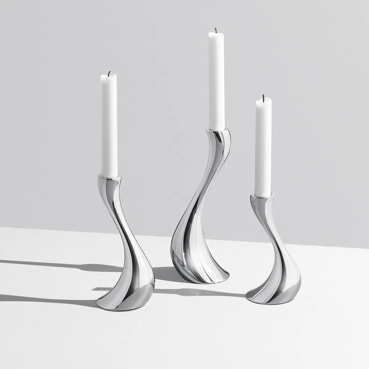 Eine von Georg Jensens erfolgreichsten Kollektionen ist die COBRA-Linie, die durch ihre unverwechselbaren Formen bereits die Herzen vieler Kunden erobert hat. Die formvollendete Leichtigkeit hat einen magischen Effekt - einer der ungleich größer wird sobald das flackernde Kerzenlicht sich in der Oberfläche reflektiert. Man kann seinen Blick nur schwer von den COBRA Kerzenhaltern abwenden, insbesondere wenn man sie in Zweier- oder Dreiergruppen arrangiert.