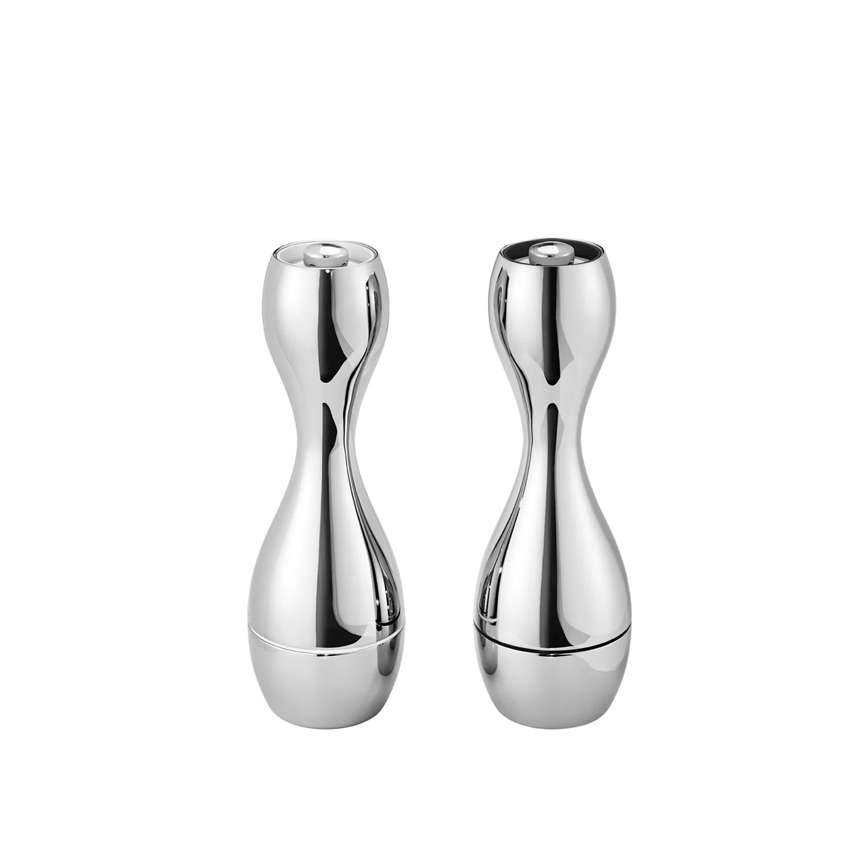Das aus zwei ergonomischen und organisch geformten Formen bestehende Salz- und Pfeffermühlen-Set aus Edelstahl ist ein schöne Ergänzung auf dem Tisch. Die Stücke liegen beim Gebrauch angenehm in den Händen und das Mahlwerk ist oben positioniert, sodass keine Salz- und Pfefferreste auf dem Tisch zurückbleiben. Die Cobra Kollektion von Wohnaccessoires und Haushaltsgegenständen ist eine der bekanntesten Kollektionen von Georg Jensen.