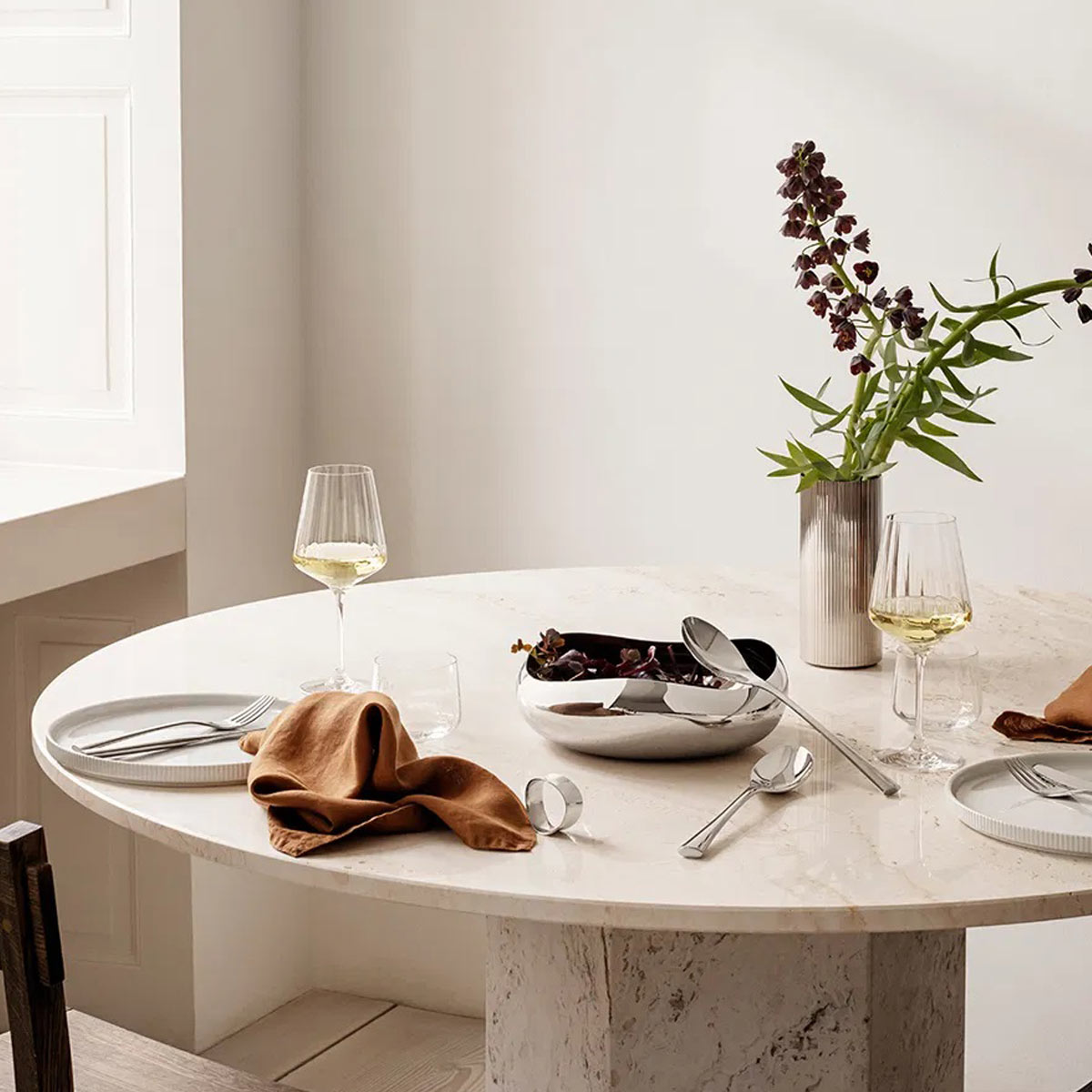 Die Marke Georg Jensen, die auf eine mehr als 100-jährige Geschichte zurückblicken kann, steht mit ihren Lifestyle-Produkten wie Haushaltsartikel, Uhren, Schmuck und Einrichtungsgegenstände für hochwertige Handarbeit und zeitloses ästhetisches Design.