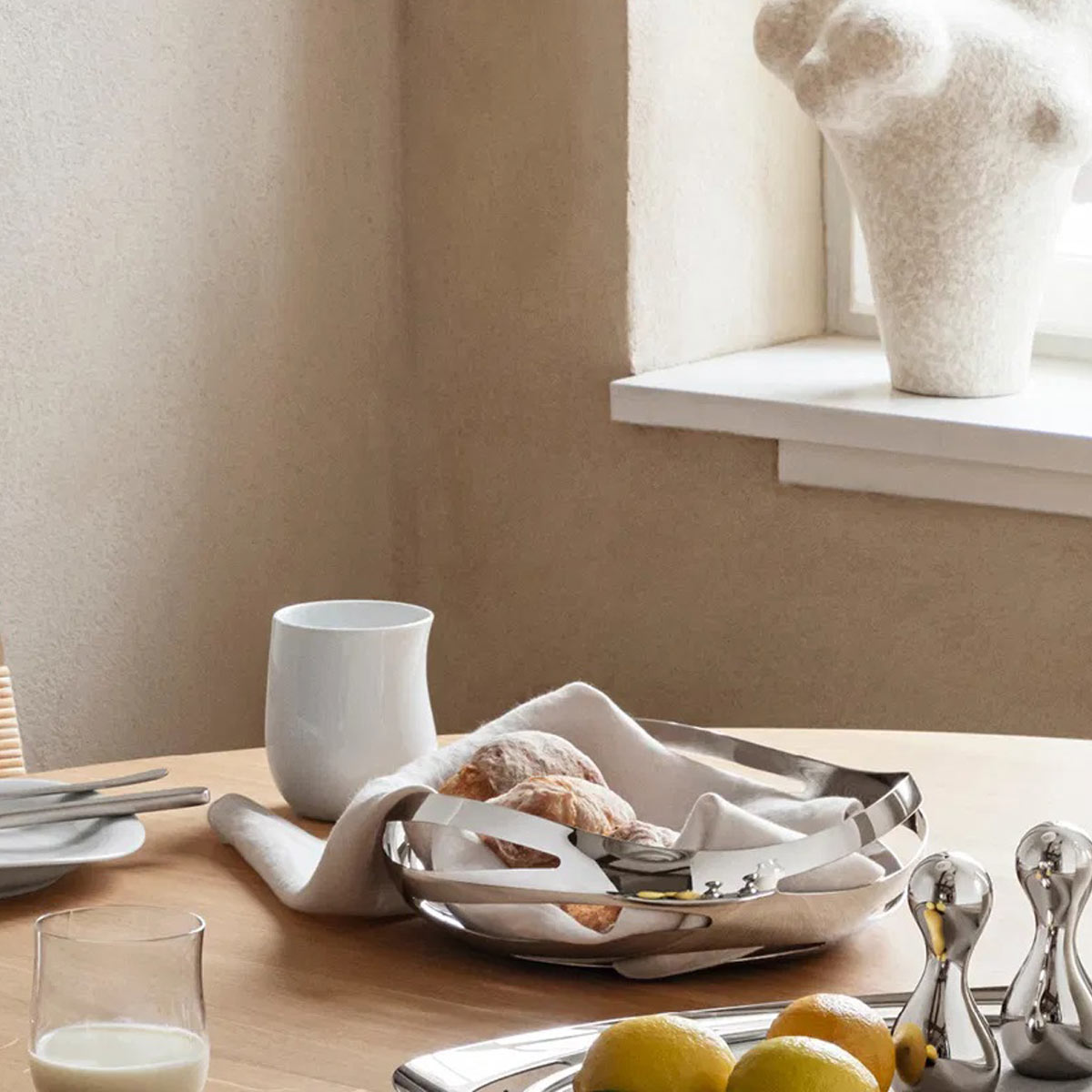 Edelstahlstränge formen diese absolut moderne Variante eines Brot- oder Obstkorbs. Die fließende, organische Form macht ihn zu einer auffälligen Ergänzung in der Küche sowie zum perfekten Herzstück auf dem Esstisch. Cobra wurde von dem aus Deutschland stammenden Designer Constantin Wortmann entworfen und ist eine der bekanntesten und beliebtesten Kollektionen von Georg Jensen.