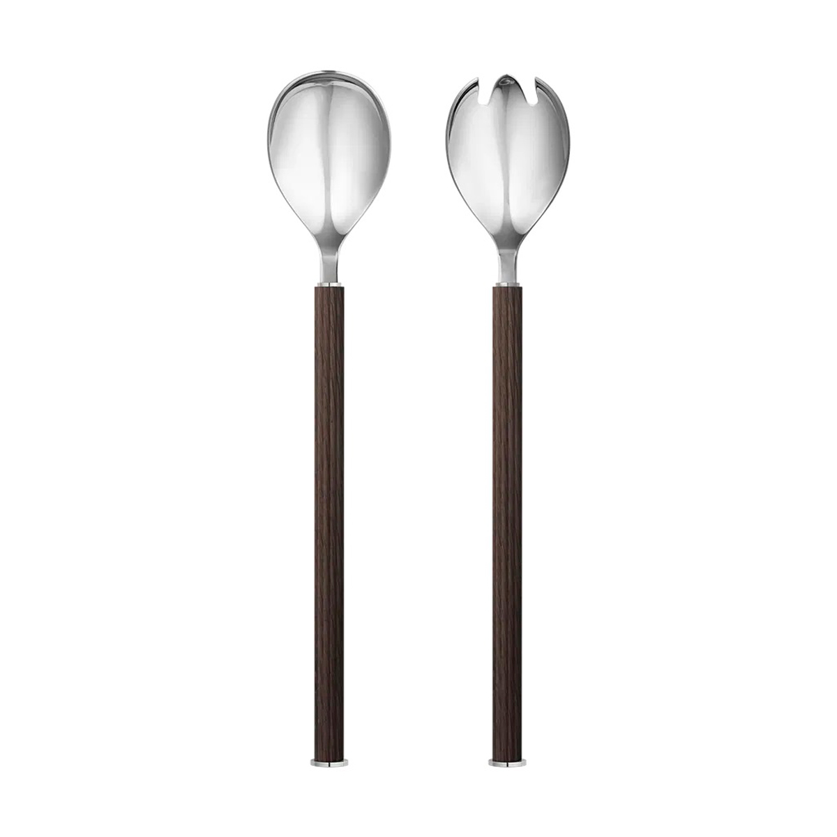 Das Salatbesteck ist wunderschön aus hochglanzpoliertem Edelstahl mit Griffen aus geräucherter Eiche gefertigt.
