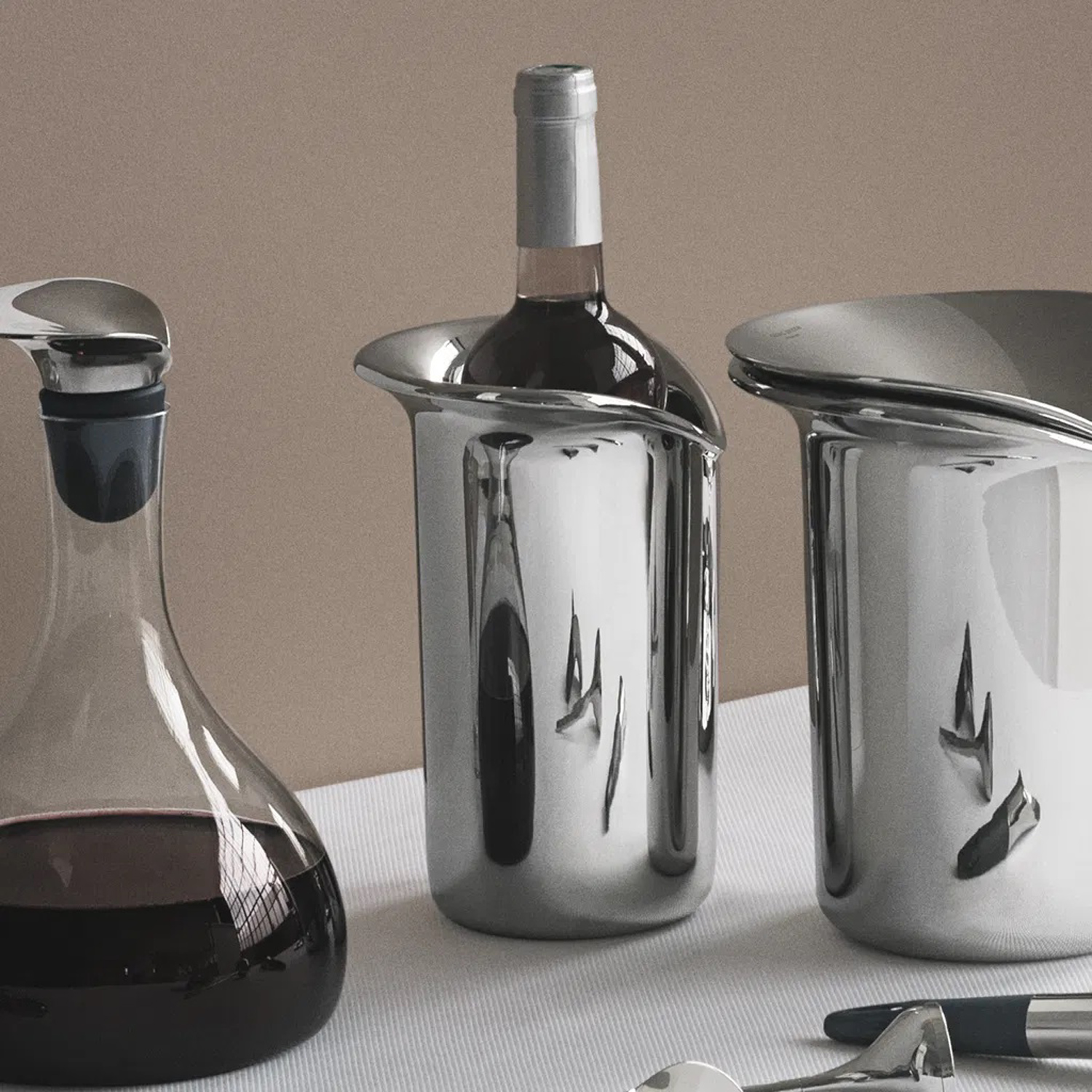 Die richtige Temperierung von Wein ist ein wichtiger Bestandteil für das Servieren und das Trinkvergnügen - verleihen Sie dem Ganzen Stil mit dem WINE Weinkühler. Der doppelwandige Weinkühler aus Edelstahl ist wärmedämmend und hält die Flasche für längere Zeit kalt. Die organisch skulpturale Form bringt eine Note skandinavischen Designs in die Hausbar.