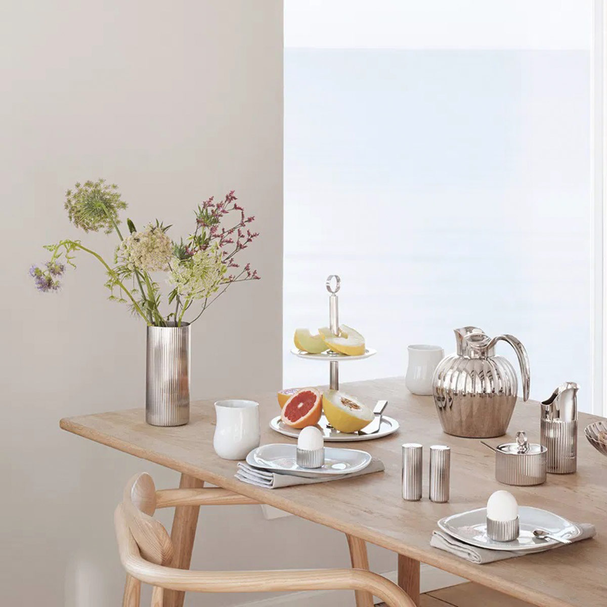 Die elegant geriffelten Linien aus der Art Deco-Zeit finden in dieser zeitlosen skandinavischen Designvase ein perfektes zu Hause. Das Ergebnis ist der Klassiker Georg Jensens: auffallend, modern und sofort erkennbar. Die stilvolle BERNADOTTE-Vase bringt skandinavisches Flair auf ihren Tisch. Durch die elegante Ausstrahlung der Vase kommen ihre Blumenarrangements wunderbar zur Geltung.