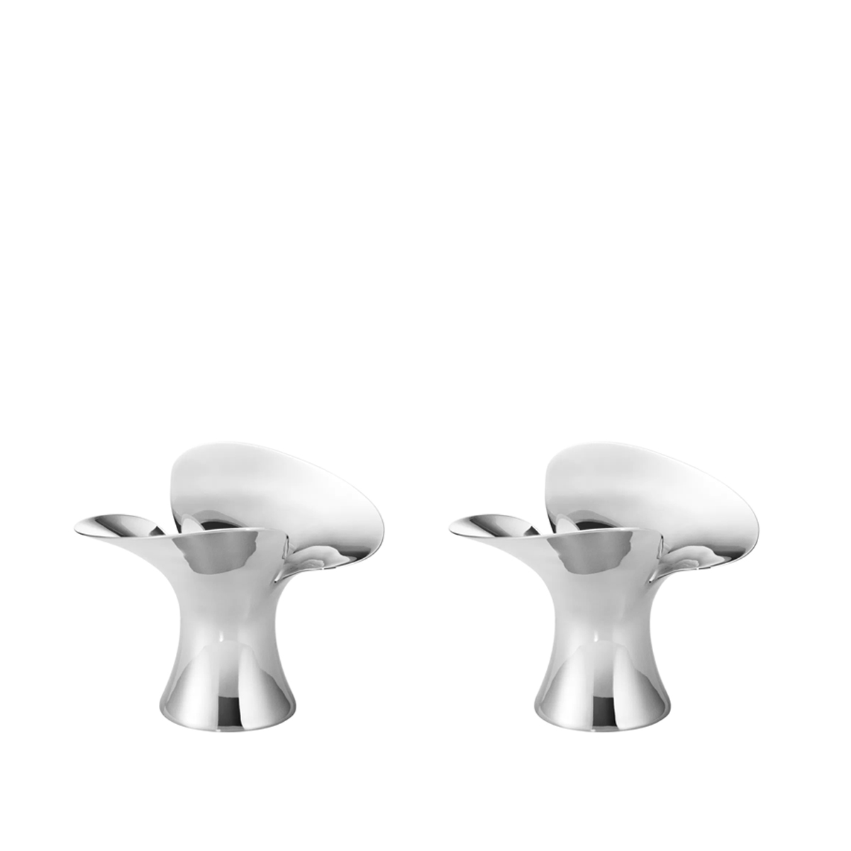 Das Set mit zwei Bloom Kerzenhaltern ist ein schönes Element in jedem Zuhause und das perfekte Geschenk für jemanden, den Sie schätzen. Die Kerzenhalter haben die sanften, organischen Formen der Kollektion, inspiriert von den nordischen Landschaften und erinnern an Blätter, die sich um eine Blüte schmiegen.