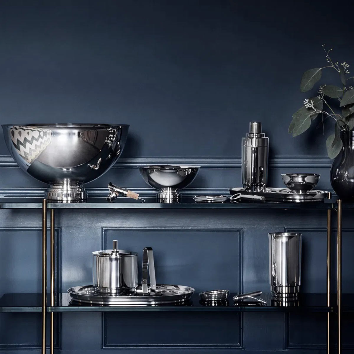 Die elegante Bar-Kollektion aus hochglanzpoliertem Edelstahl von Georg Jensen mit dem Titel Manhattan, ist inspiriert von der glamourösen Gatsby-Ära in New York City sowie den Einflüssen der geometrisch-dekorativen Formen des Art Deco-Stils. Entdecken Sie die Welt der Bar-Kultur mit dieser formschönen Kollektion neu und genießen Sie die Kunst der Cocktail-Schule mit diesen stilvollen Utensilien.