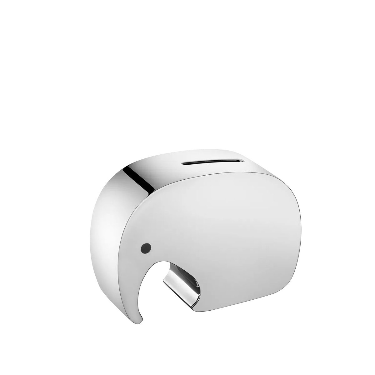 1989 entwarf Jørgen Møller mit seinem Enkelkind den Flaschenöffner ELEFANT, der weltweit zu einem Bestseller wurde. Und es folgten weitere ELEFANT-Designs, unter anderem ein Schlüsselanhänger. Das jüngste Design in der legendären Elefantenparade von Georg Jensen ist diese stilsichere, glänzende Spardose.