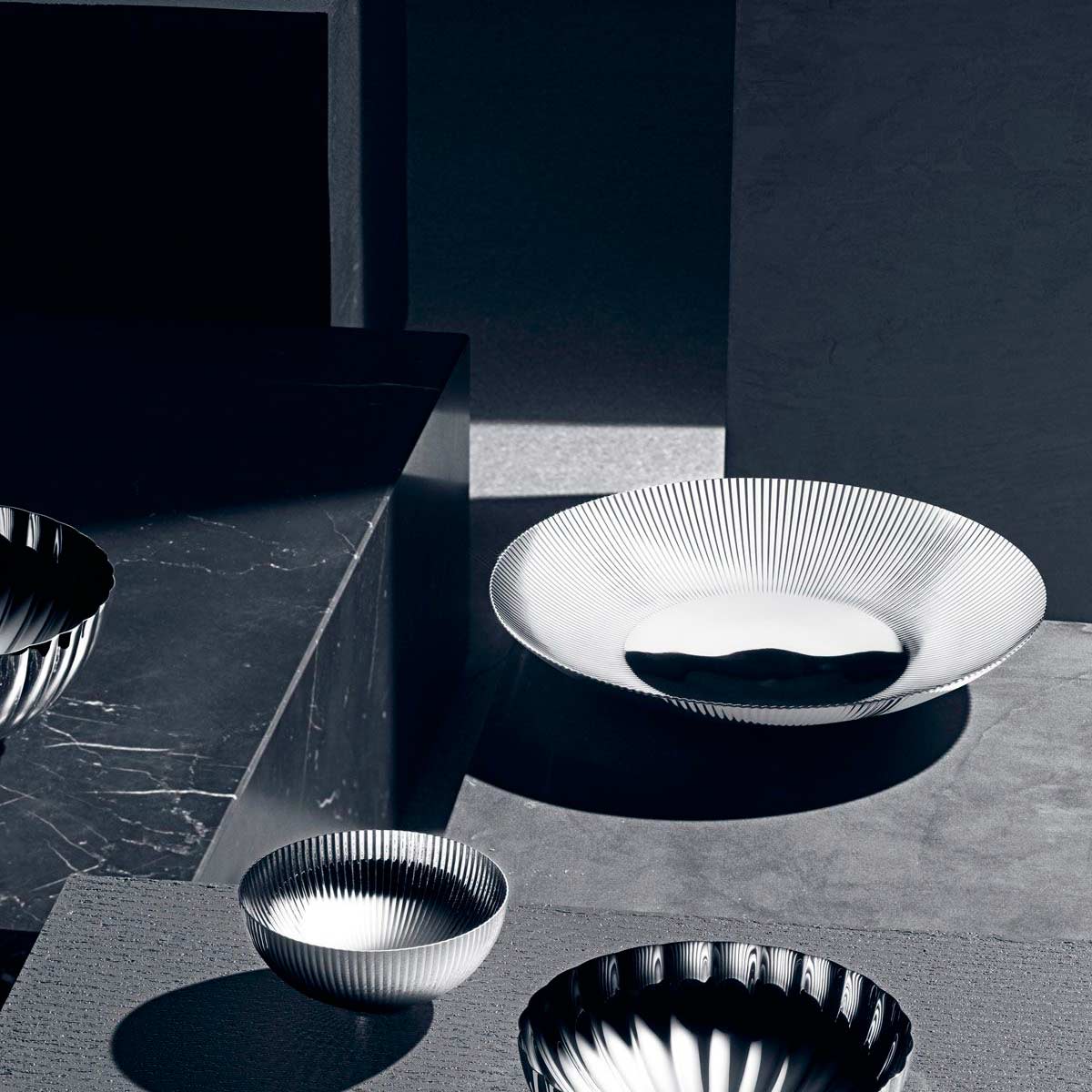 Sigvard Bernadotte war einer der frühesten und einflussreichsten Design-Partner von Georg Jensen. Seine klassischen Silberstücke inspirieren jetzt die Bernadotte Kollektion, indem ihre Details auf Edelstahl übertragen werden, um ein ganz neues Publikum zu erreichen. Die Bernadotte flache Schale wird fachmännisch aus hochglanzpoliertem Edelstahl hergestellt, der die Rippenstruktur hervorhebt.