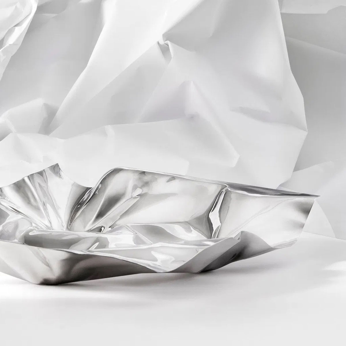 Die Schale wurde erstmals 1988 in enger Zusammenarbeit mit der Georg Jensen Silberschmiede entworfen. Das Design zeigt Verner Pantons innovativen Zugang zum Handwerk und seine Leidenschaft für das Experimentieren mit Material und Form.