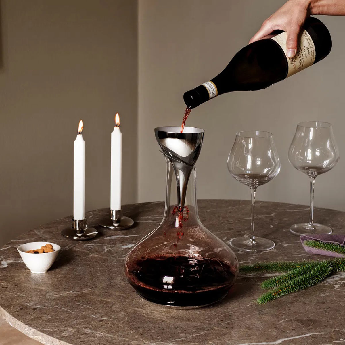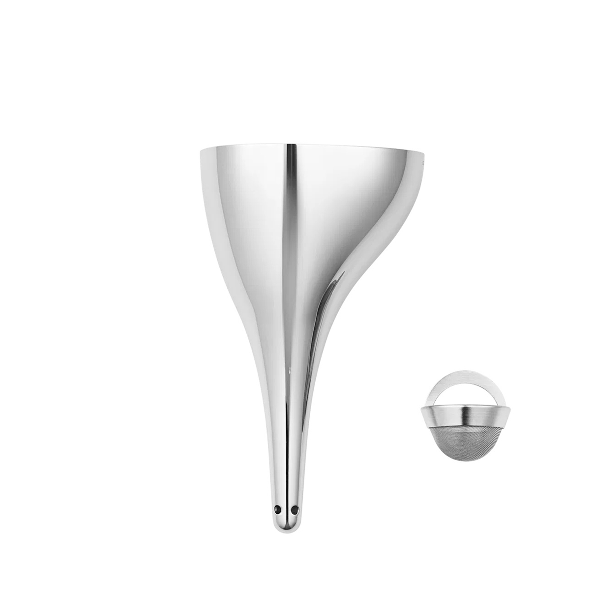 Ein Auge für schöne Details zeichnet einen guten Gastgeber aus und ein Dekanter kann die Präsentation und den Geschmack des Weins verstärken. Füllen Sie mit diesem stilvollen Belüftungstrichter den Wein von der Flasche in die Karaffe und verleihen Sie der Zeremonie stilvollen Glanz. Er ist aus Edelstahl und hat einen abnehmbaren Spezialfilter zum Entfernen von Ablagerungen und ist die perfekte Ergänzung zum Sky Dekanter.
