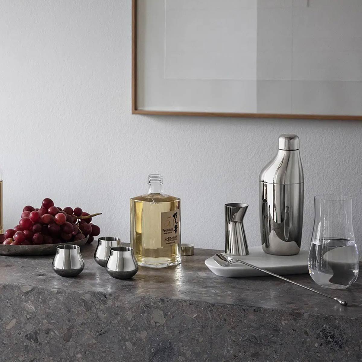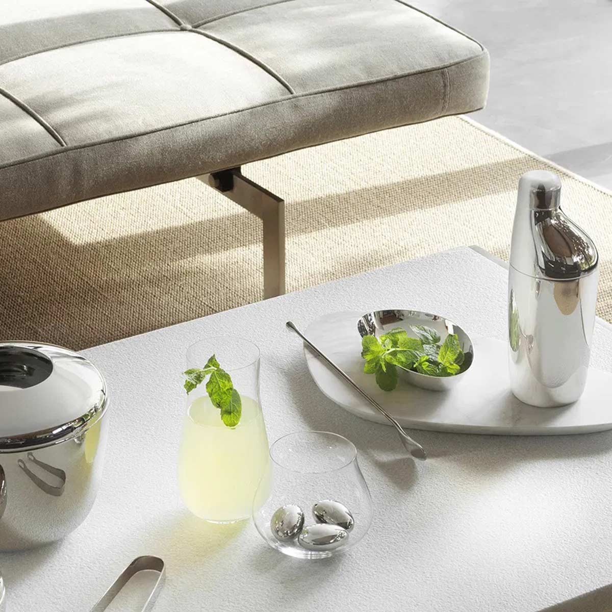 Hinter der SKY Kollektion steht der Gedanke, die funktionalen Aspekte traditioneller Bar-Utensilien zu betonen. Das Ergebnis sind asymmetrische und ergonomische Formen, die gut in der Hand liegen und eine skulpturale, dynamische und elegante Designsprache sprechen.