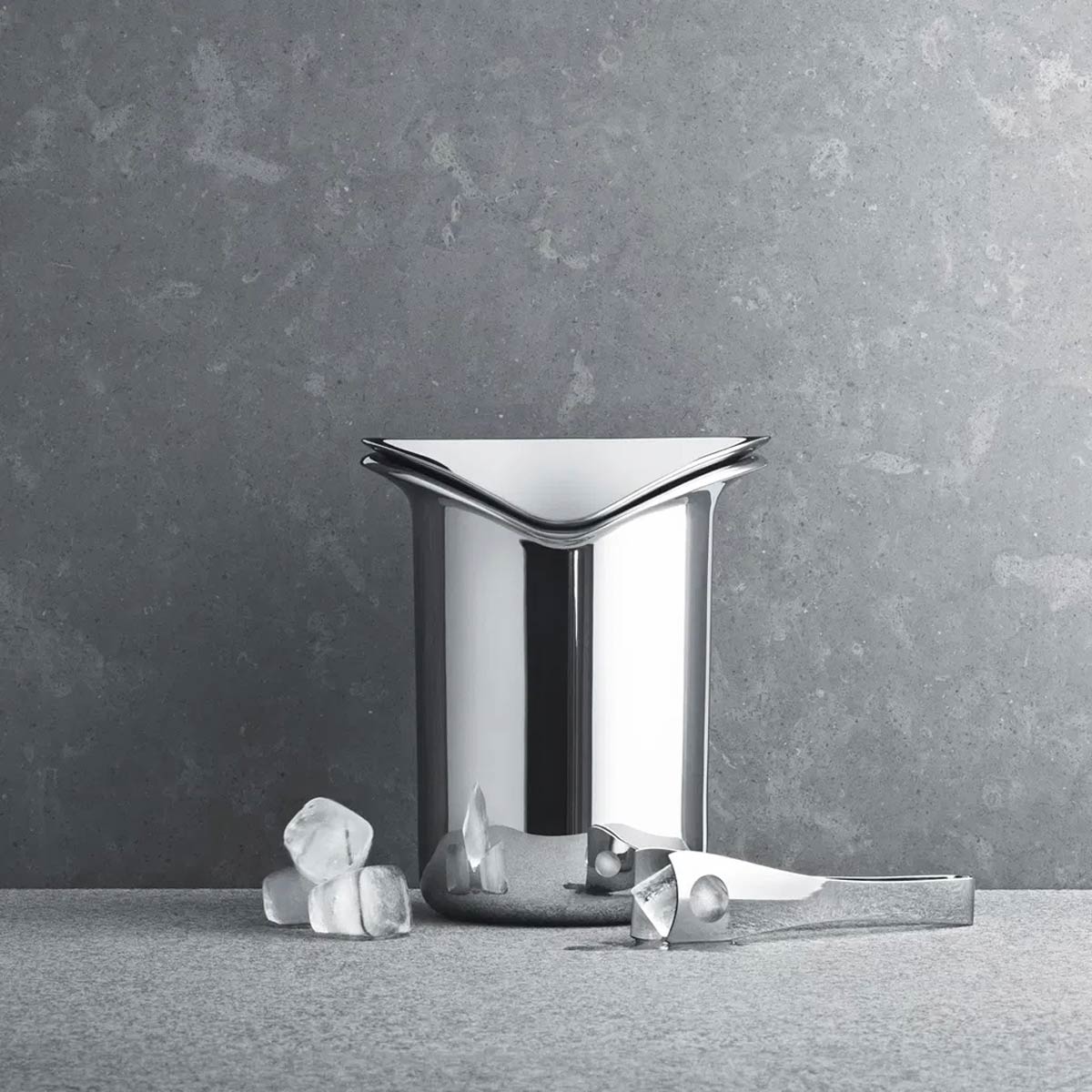 Die richtige Temperierung von Wein ist ein wichtiger Bestandteil für das Servieren und das Trinkvergnügen - verleihen Sie dem Ganzen Stil mit dem WINE Eisbehälter. Der doppelwandige Weinkühler aus Edelstahl hält das Eis für längere Zeit kalt. Die organisch skulpturale Form bringt eine Note skandinavischen Designs in die Hausbar. Der Eiskübel ist ausgestattet mit einer Zange im modernen minimalen Design.