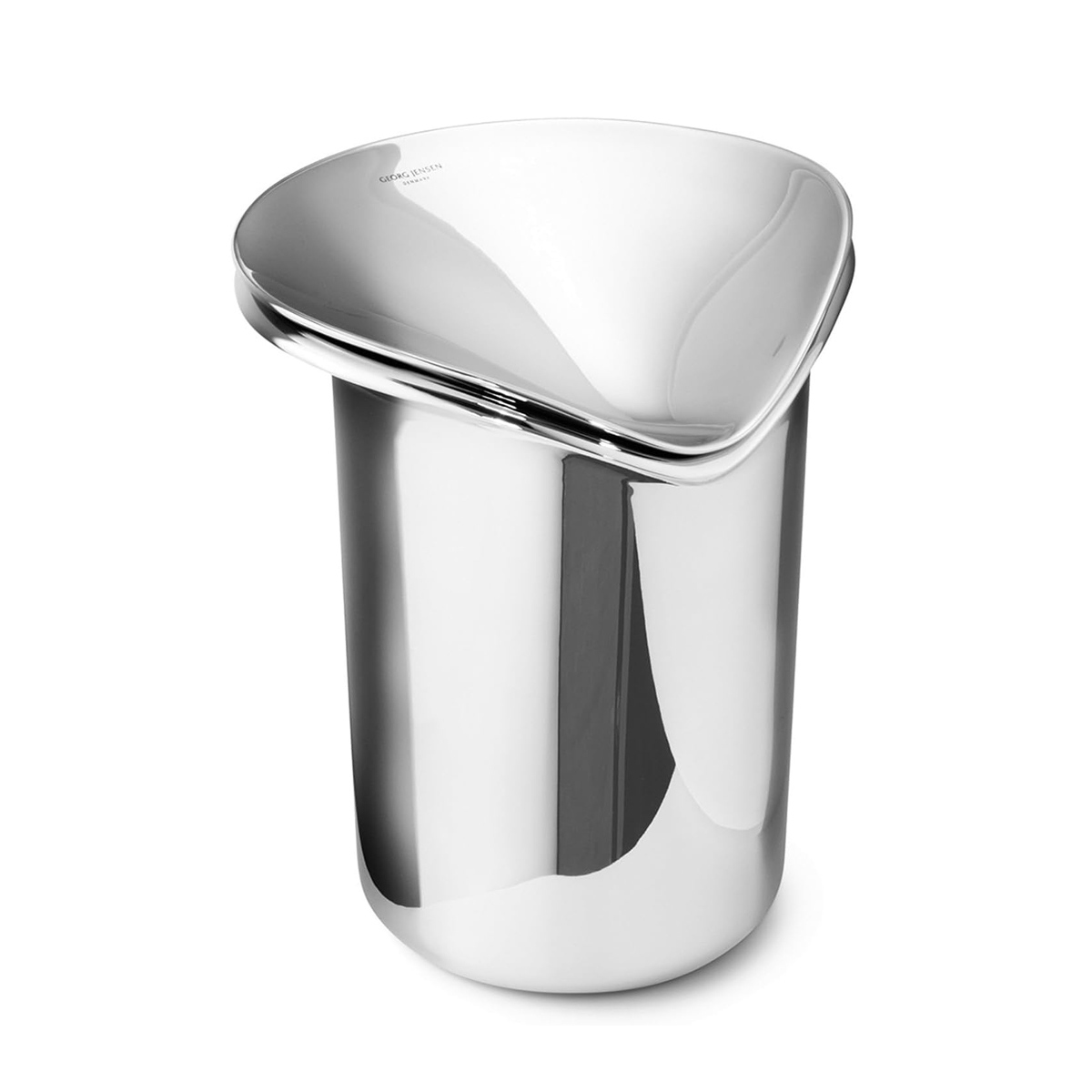 Thomas Sandell nutzt seine Vergangenheit im Industrie-Design und der Architektur um rigorose Praktikabilität und ebenso kühnes architektonisches Flair in all seinen Arbeiten zu verbinden. Für Georg Jensen entwickelte er die WINE Kollektion aus Barzubehör, welche minimalistische Formen und exzellente Funktionalität besitzt. Damit ist es ein perfektes Geschenk für jeden Weinliebhaber. Das Produkt hat keine Kühlfunktion. Der doppelwandige Stahl hat eher einen isolierenden Effekt, der dafür sorgt, dass das Eis seine Temperatur länger hält.