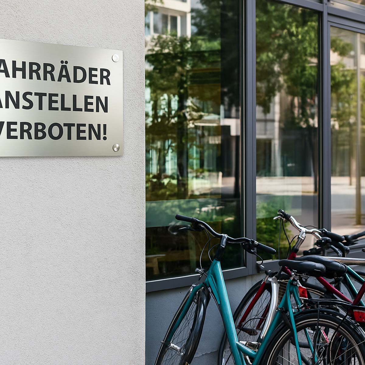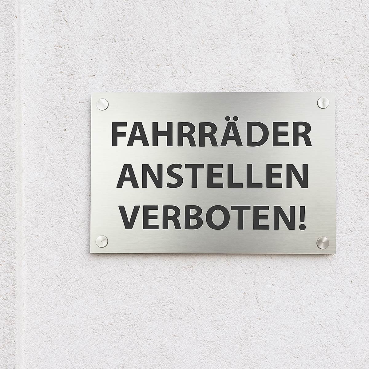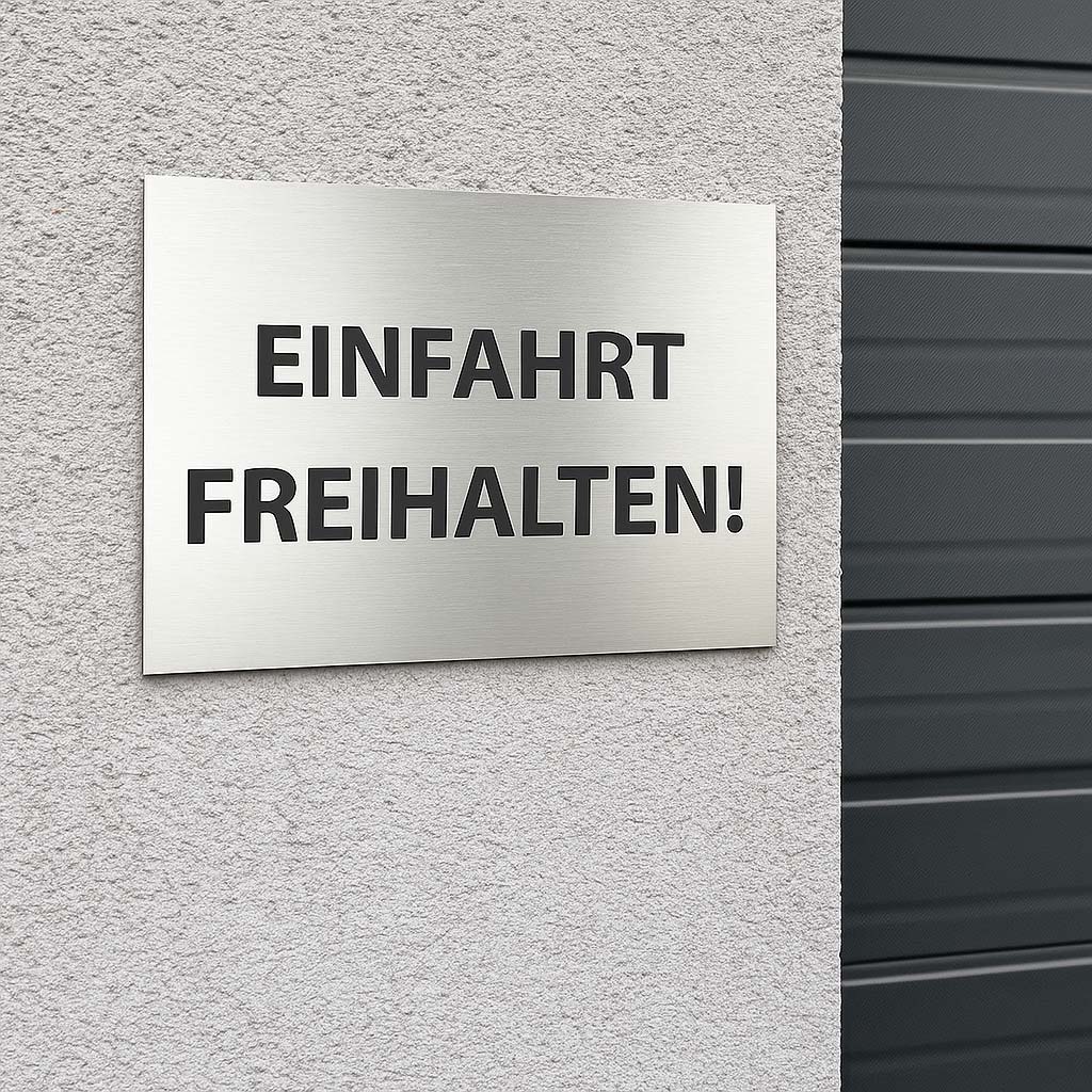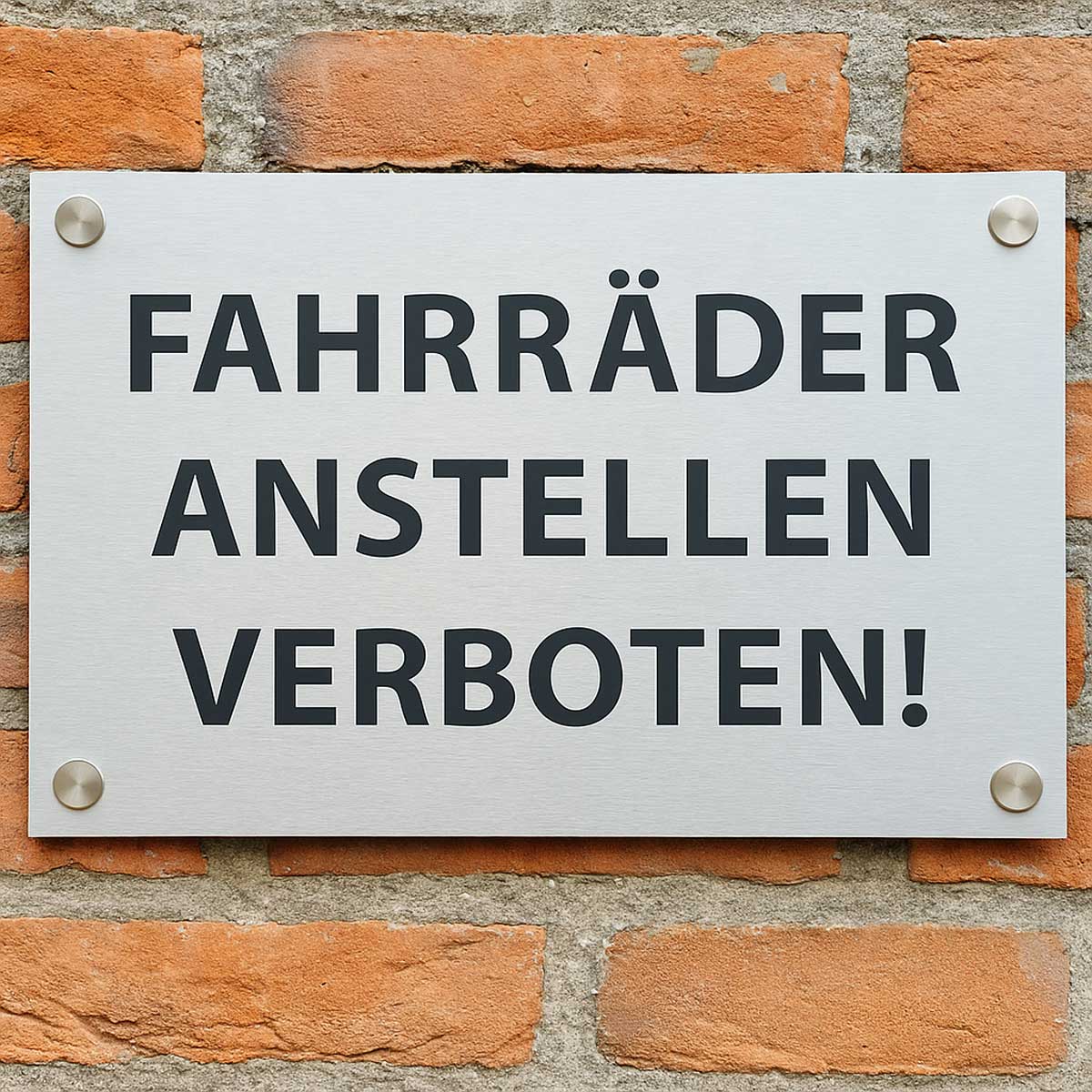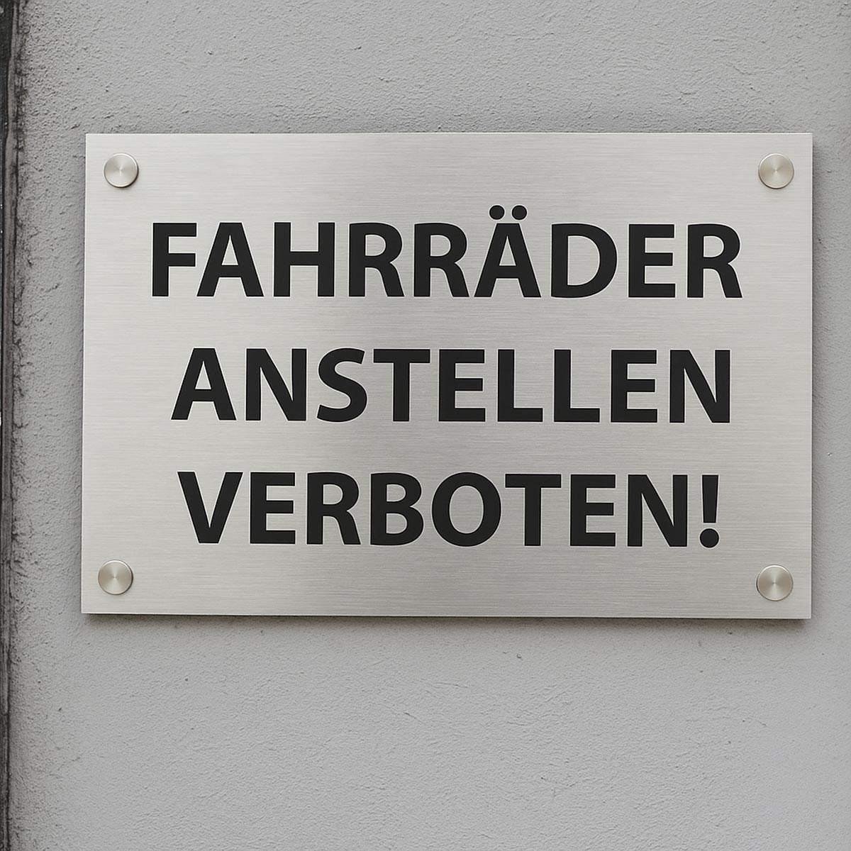 Das Schild in DIN A4 (210 x 297 mm) kann wahlweise geklebt, geschraubt oder mit Edelstahl-Befestigungsset montiert werden. Jedes Exemplar wird auf Bestellung gefertigt – für beste Qualität und saubere Verarbeitung.