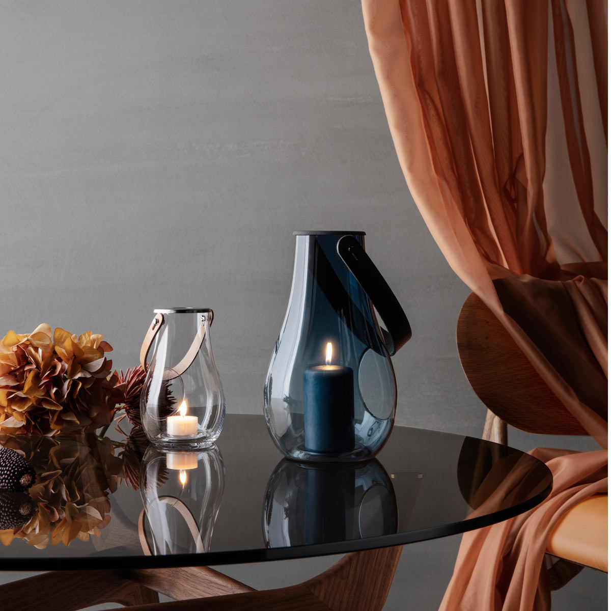 Die dunkelblaue Farbe ist klassisch und stilvoll und verleiht Ihrem Zuhause drinnen wie draußen einen eleganten und natürlichen Ausdruck. Wenn der Schein der Kerzen durch das mundgeblasene Glas reflektiert wird, entsteht ein warmes und gemütliches Licht, und die Liebe der Designerin Maria Berntsen zum Material Glas und seiner Fähigkeit, Licht einzufangen und zu reflektieren, ist deutlich spüren.