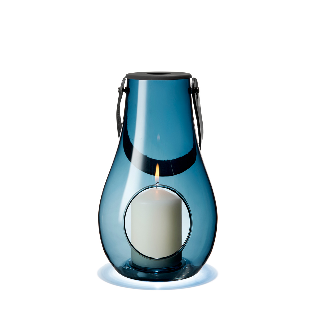 Die von Maria Berntsen entworfene Design With Light Laterne von Holmegaard ist die perfekte Lichtquelle für eine gemütliche Beleuchtung auf der Terrasse oder als Dekoration im Innen- und Außenbereich. Diese einzigartige, 25 cm hohe Laterne ist aus dunkelblauem mundgeblasenem Glas und schwarzem Vollnarbenleder gefertigt, was jede Laterne zu einem echten Einzelstück macht. Die Design With Light Laterne kann das ganze Jahr über als Lichtquelle oder zur Dekoration verwendet werden und Sie können sie dank des schönen, robusten Griffs aus Vollnarbenleder nach Belieben im Innen- als auch im Außenbereich bewegen.