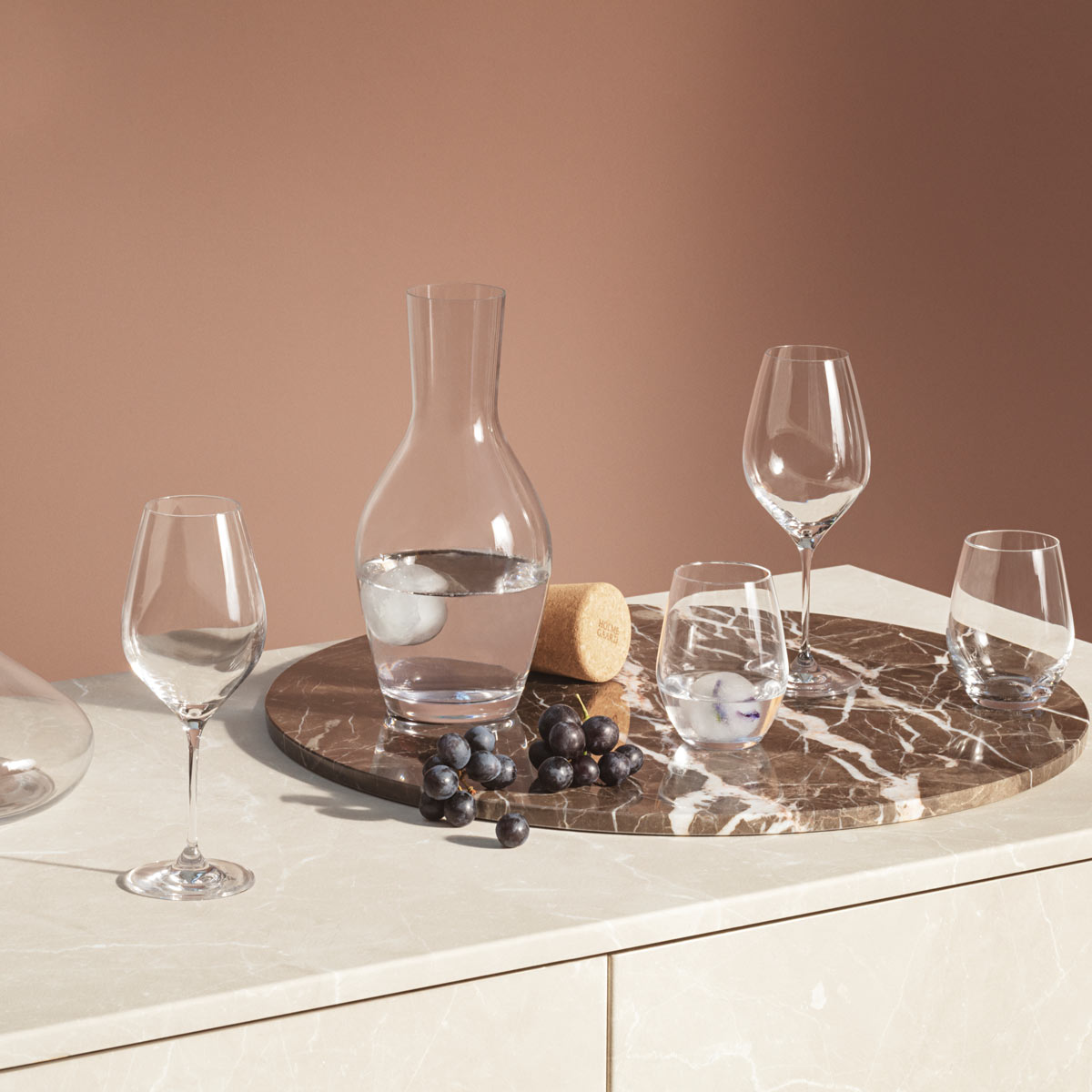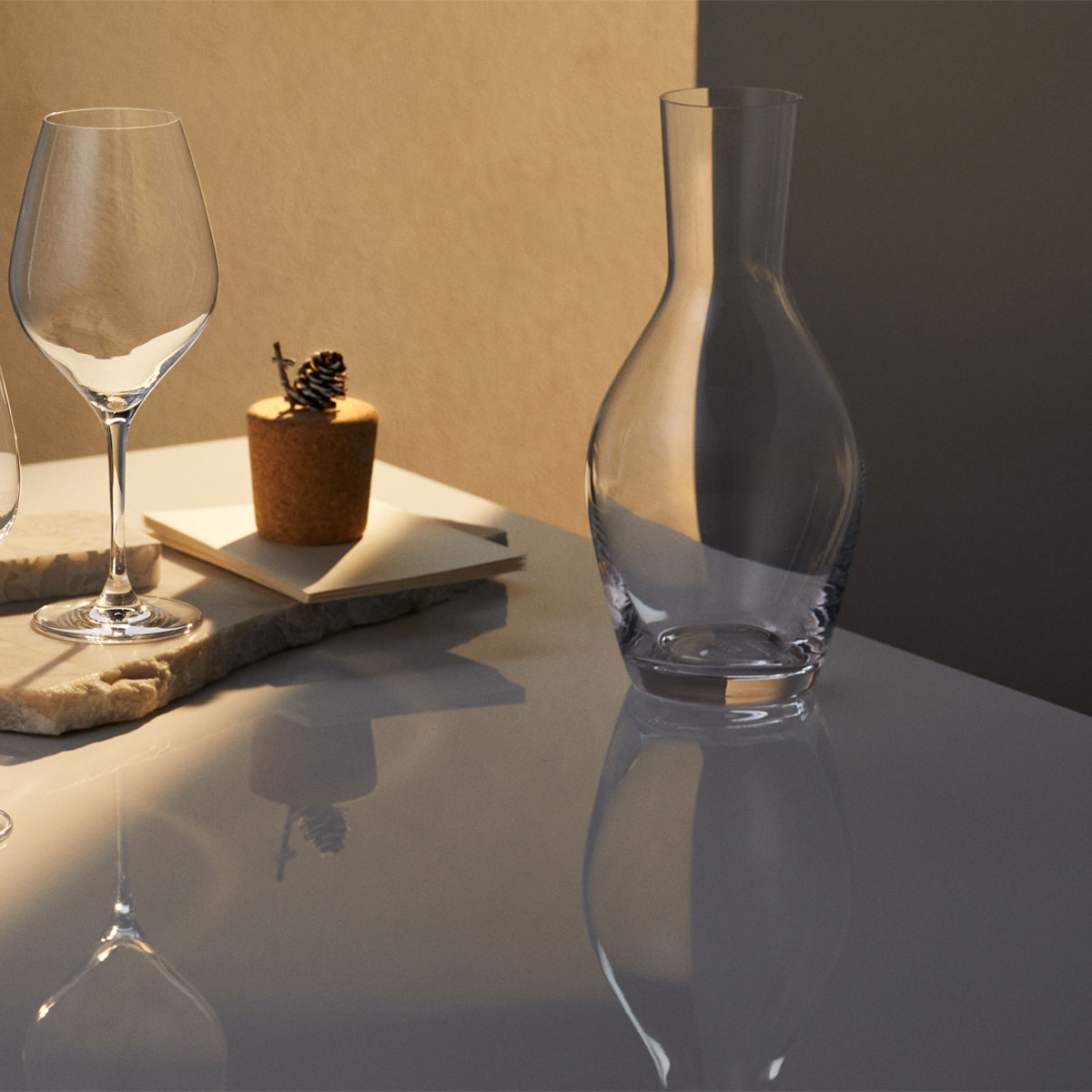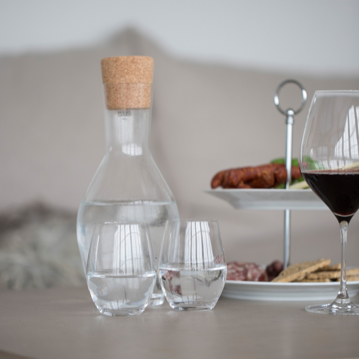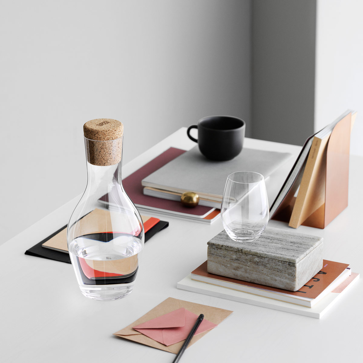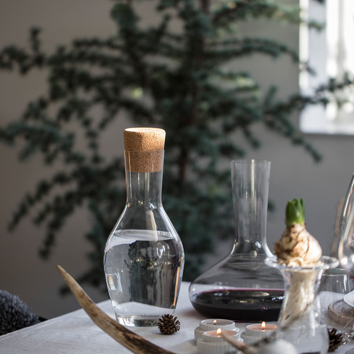 So wie bei den anderen Produkten aus Peter Svarrers umfangreicher Cabernet-Serie standen beim Entwurf der Wasserkaraffe die Designdogmen Funktionalität, Modernismus und alltägliche Eleganz im Mittelpunkt. Die Wasserkaraffe fasst 1,2 l und ist mit einem praktischen, trendigen Korken ausgestattet, so dass Wasser mit Kohlensäure während der Mahlzeit perlend frisch bleibt.