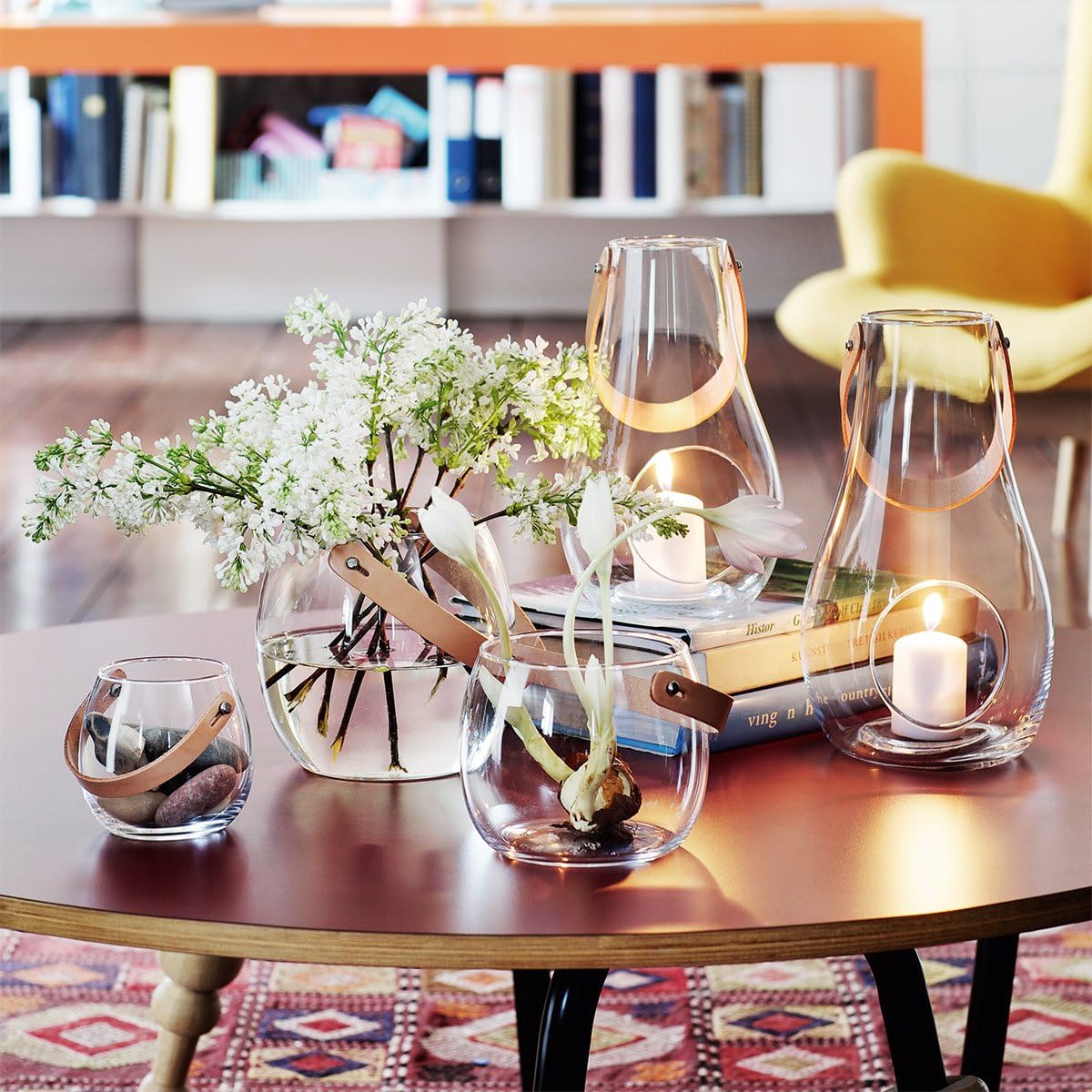 WARNUNG! Lassen Sie Kerzen NIEMALS unbeaufsichtigt brennen. Stellen Sie Ihre Laterne immer auf eine nicht brennbare Oberfläche und lassen Sie die Kerze niemals vollständig abbrennen. Hitze kann dazu führen, dass die Laterne zerbricht und so zum Brand beiträgt. Befolgen Sie diese einfachen Sicherheitstipps und genießen Sie Ihr neues Design von Holmegaard.