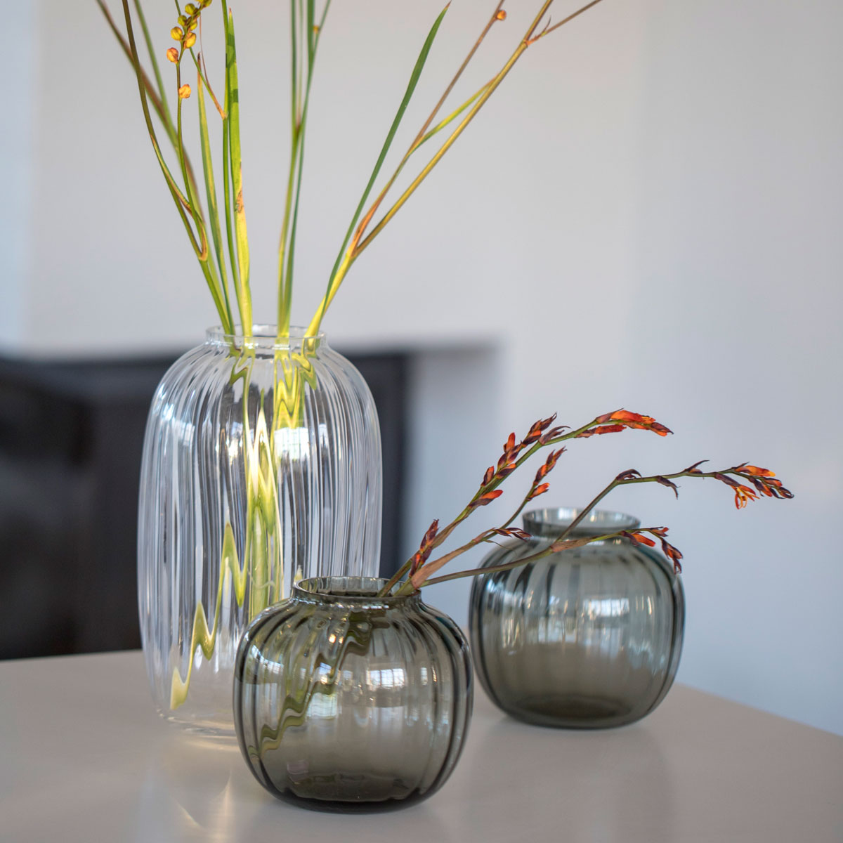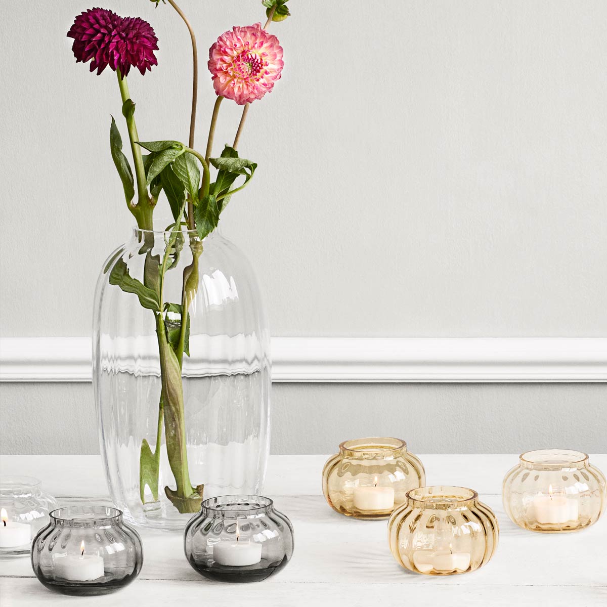 Die Vase ist auch in einer kleineren, pflaumenfarbenen Ausführung erhältlich.