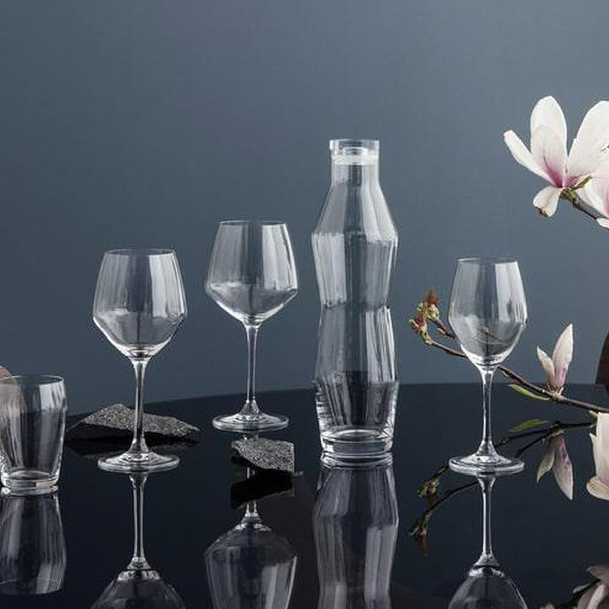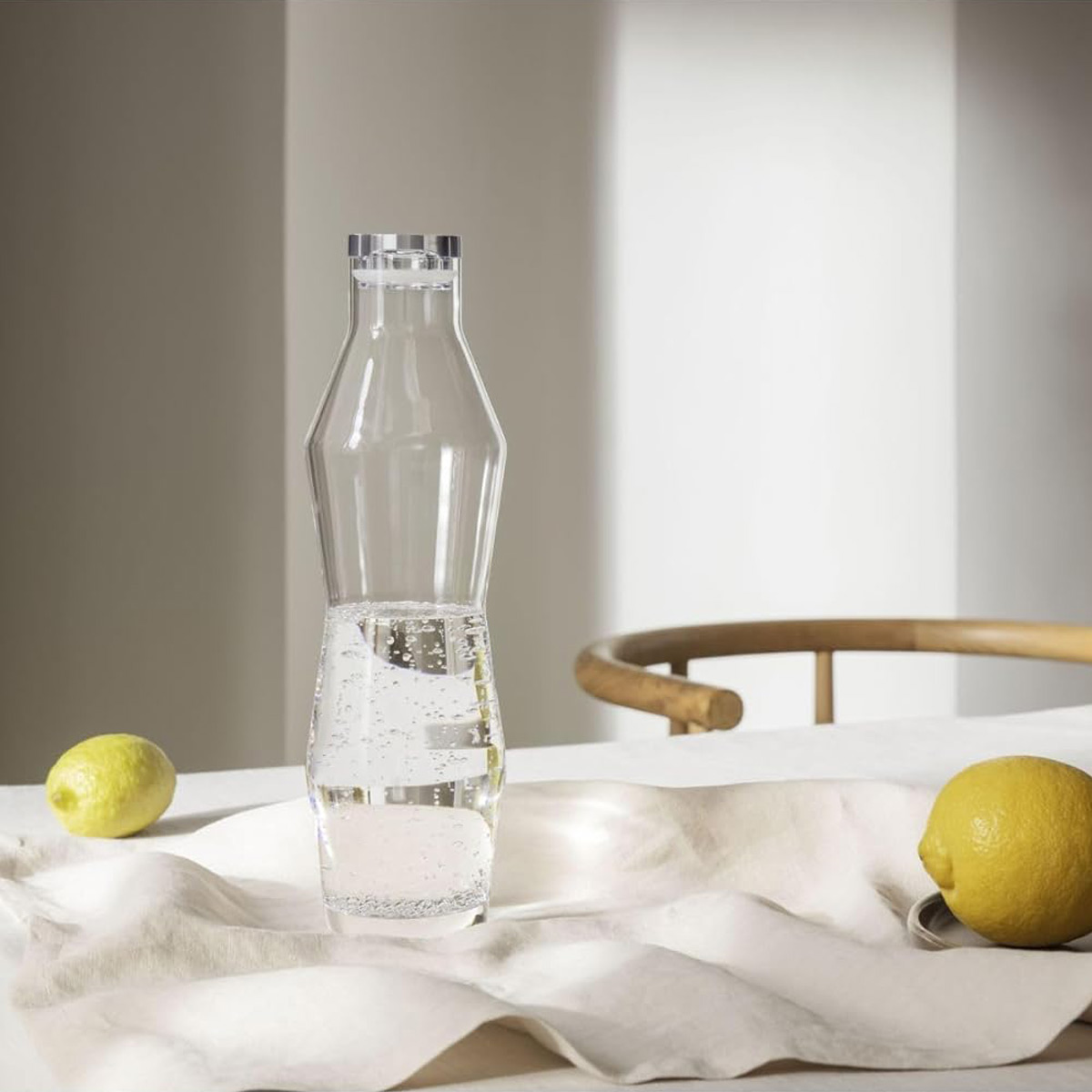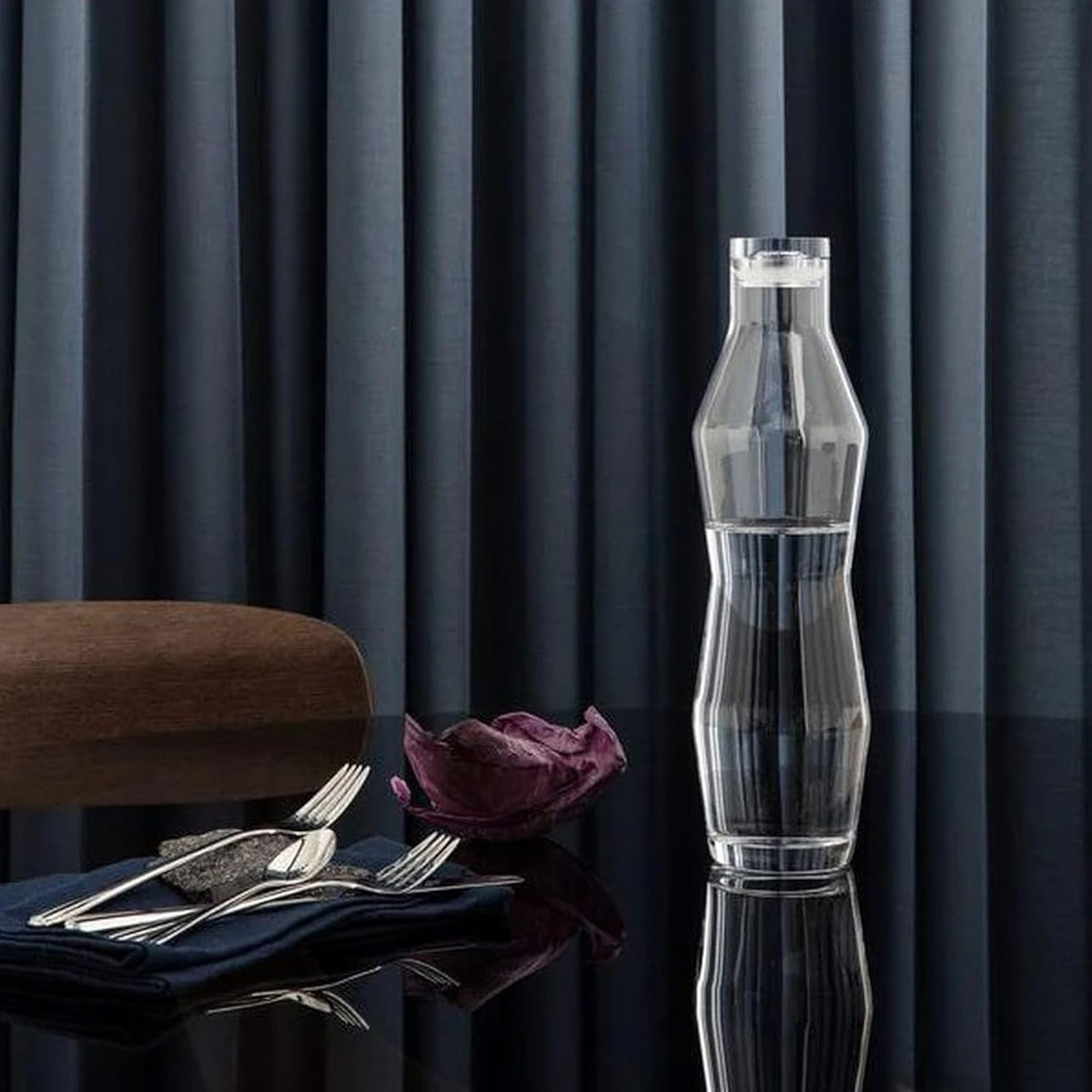 Alle Gläser der Perfection-Serie von Tom Nybroe habe eine schräge Linienführung, die der Serie ihren eleganten Look verleihen. Dasselbe gilt für die Wasserkaraffe. Die markanten Linien sorgen bei der Perfection-Wasserkaraffe für eine gute Ausgewogenheit, sowohl optisch als auch funktionell. Die Karaffe hat einen schmalen Ausguss, der einen guten Griff zum Halten und Ausgießen des Wassers bietet.