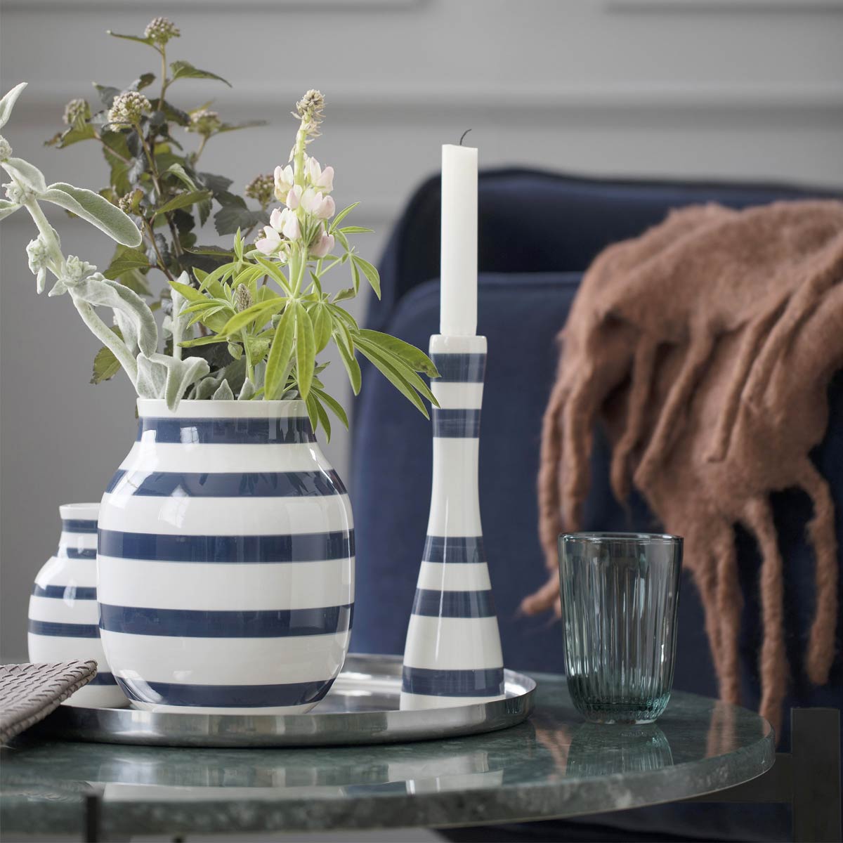 Die beliebte Omaggio-Serie wird jetzt um einen Kerzenhalter in Stahlblau