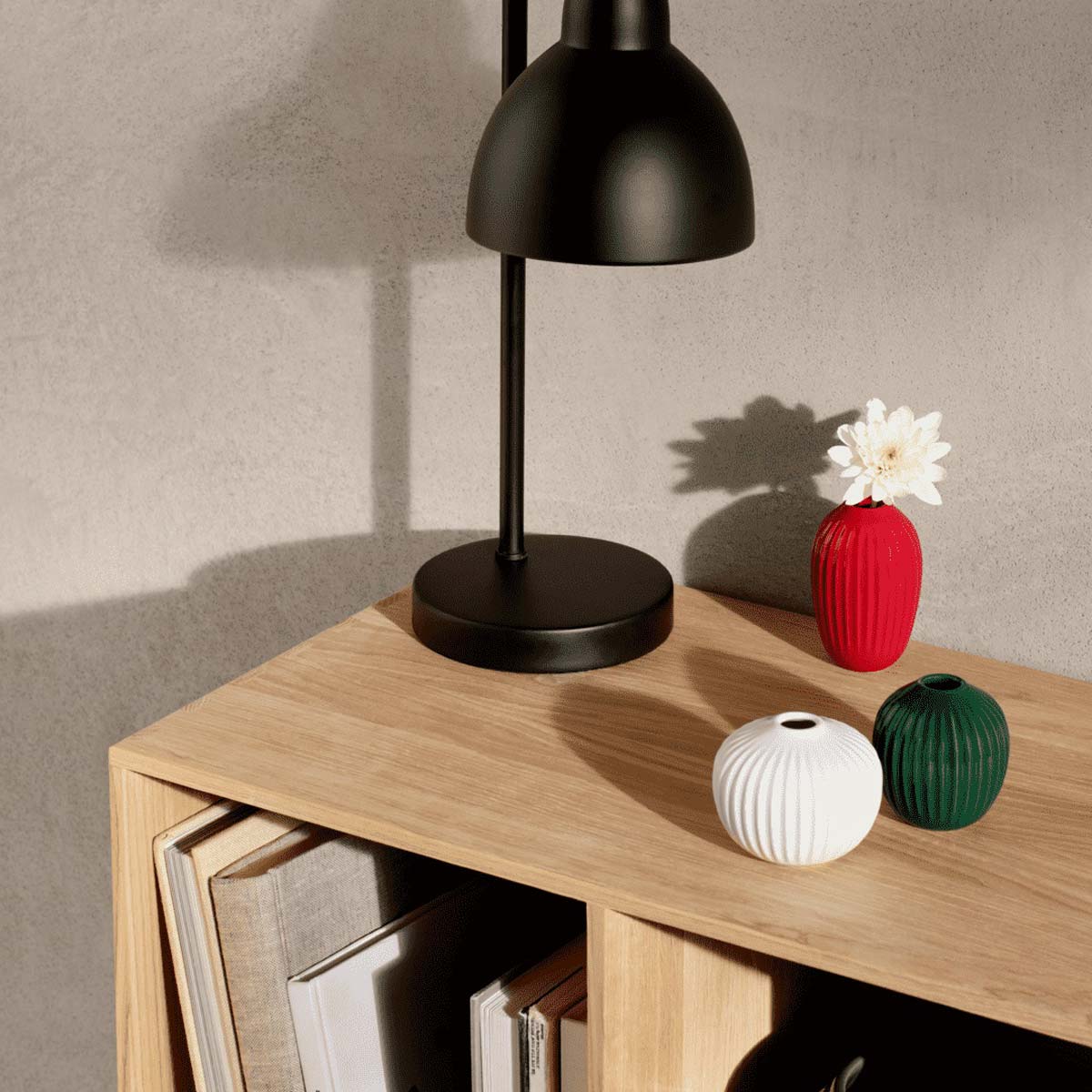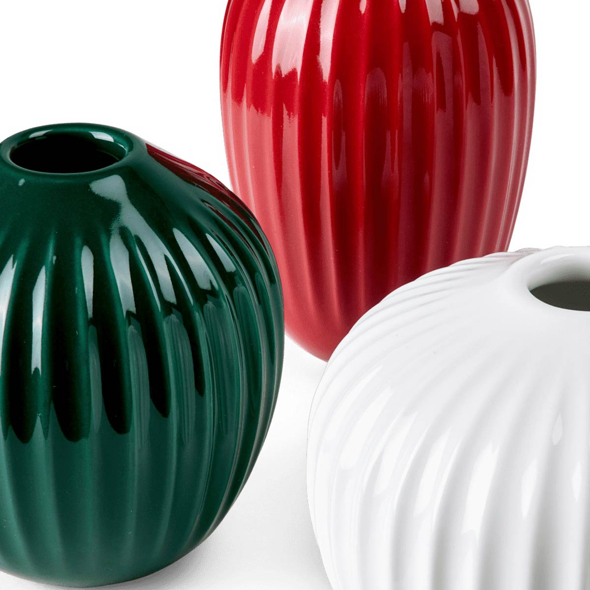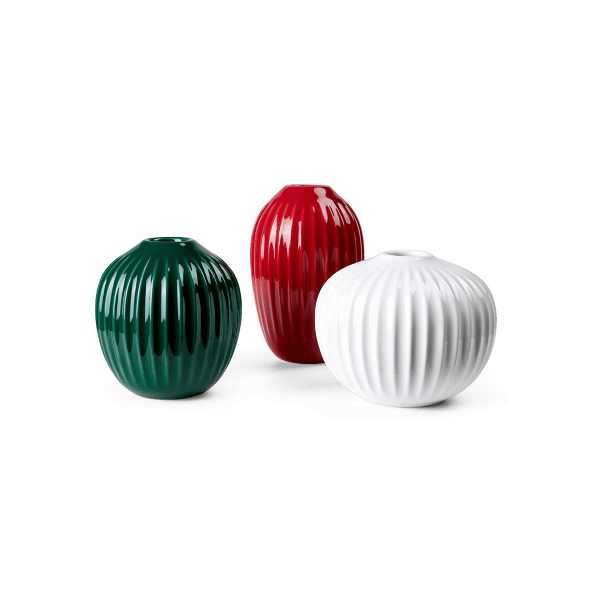 Hammershøi von Kähler ist eine stilvolle und elegante Serie, die von Hans-Christian Bauer mit viel Respekt vor dem künstlerischen Erbe, der Designgeschichte und der Handwerkstradition von Kähler entworfen wurde. Und mit diesen drei bezaubernden Hammershøi Miniaturvasen in Rot, Grün und Weiß erhalten Sie auch ein einzigartiges Set, das die Serie wunderschön repräsentiert.