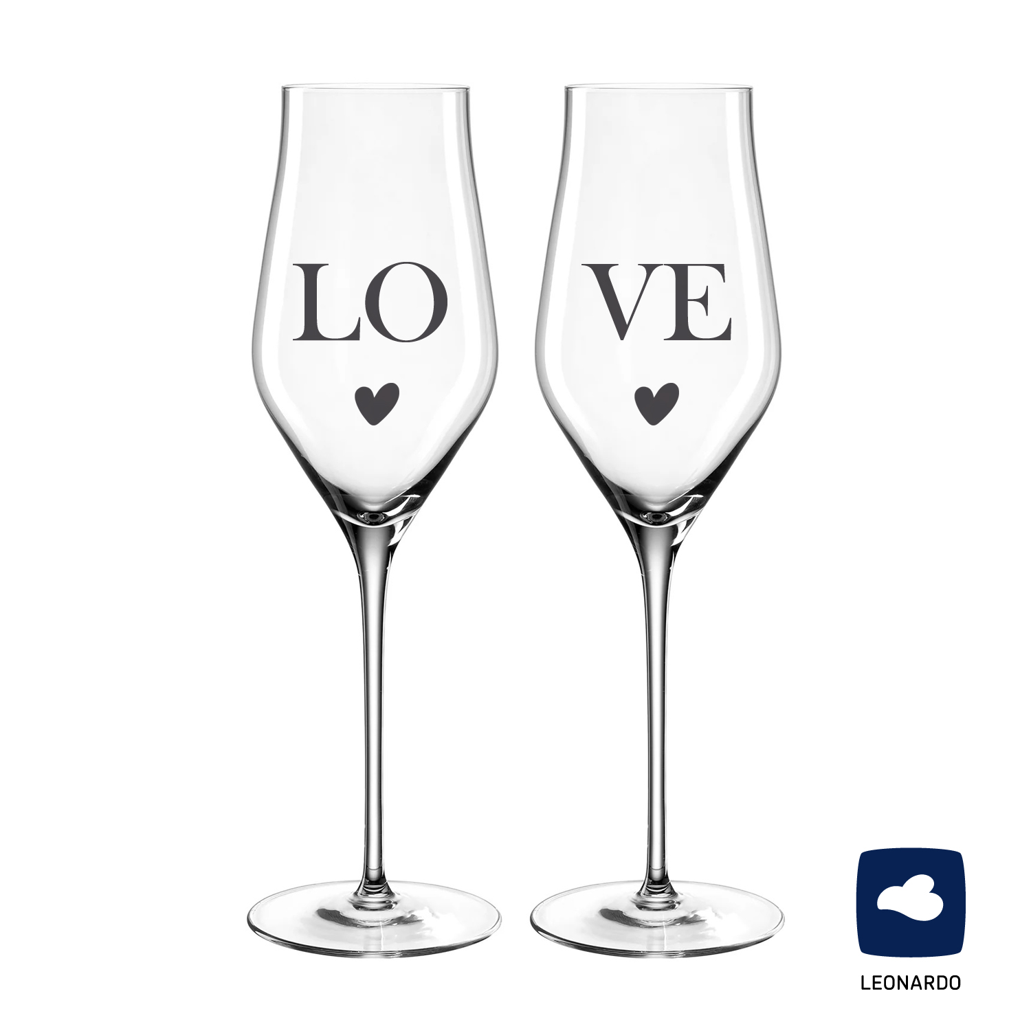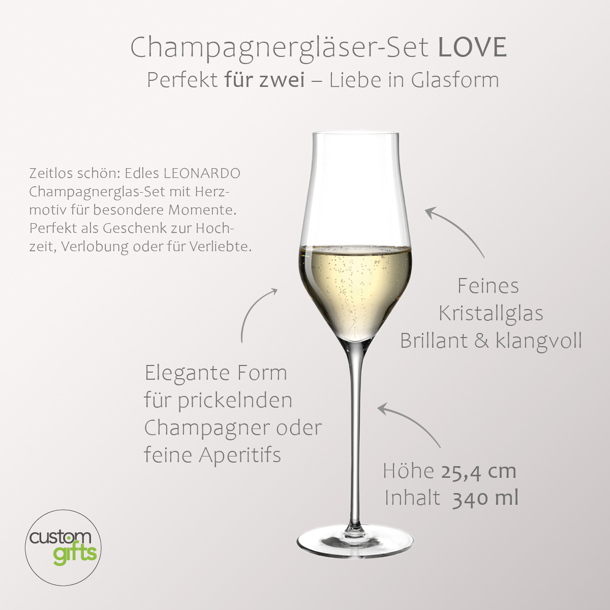 LOVE Champagnergläser Set von LEONARDO – Sektgläser mit Herz | Geschenk zur Hochzeit, Verlobung & Jahrestag | Glas-Set für Paare