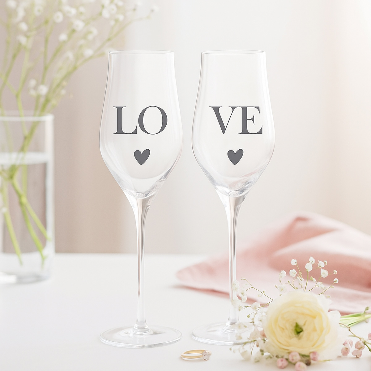Das LEONARDO Champagnergläser-Set "LOVE" ist ein Symbol für Liebe und Verbundenheit. Mit dem eleganten Aufdruck "LO" und "VE", ergänzt durch ein zartes Herz, sind diese Gläser das perfekte Geschenk für Brautpaare, Verlobte oder Jubiläen.