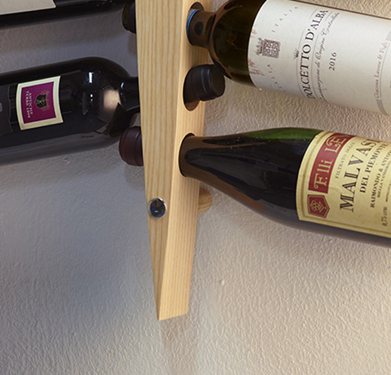 Handgefertigtes Wand-Weinregal aus massivem Eschenholz
