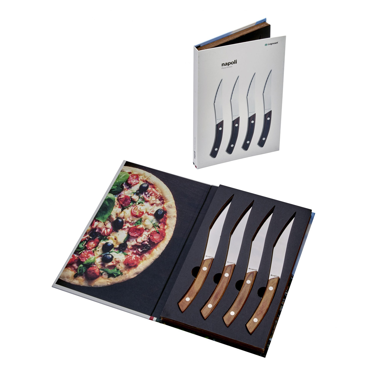 Mit dem vierteiligen Messer-Set NAPOLI von Legnoart wird das Schneiden von Pizza und Fleisch zu einem Erlebnis von höchster Präzision. Entworfen vom italienischen Designer Enrico Albertini, vereint dieses Set technische Exzellenz mit einer Ästhetik, die speziell für Liebhaber der gehobenen Gastronomiekultur geschaffen wurde. Die Kombination aus spiegelpoliertem Edelstahl höchster Güte und edlen Griffen aus Stamina-Holz verleiht jedem gedeckten Tisch eine unvergleichliche Eleganz und zeugt von der Leidenschaft für erstklassige Materialien.