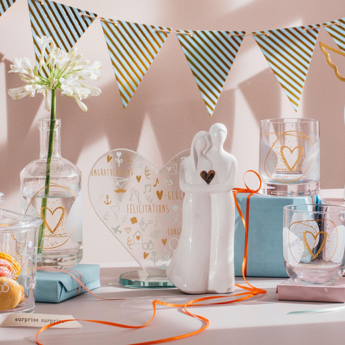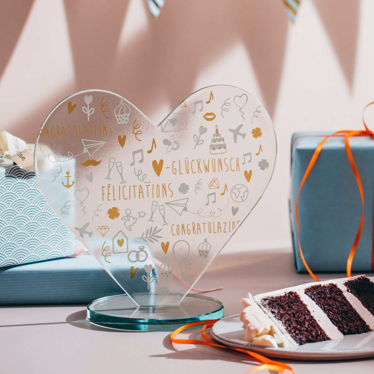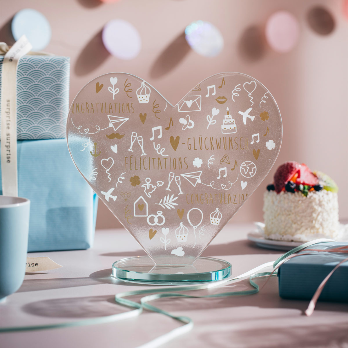 Verschenke besondere Glückwünsche - mit unserem EMOZIONE Herzobjekt. Die goldenen Dekorelemente sind ein absoluter Blickfang und ziehen garantiert die volle Aufmerksamkeit auf sich. Zum Geburtstag, Jahrestag oder Jubiläum.