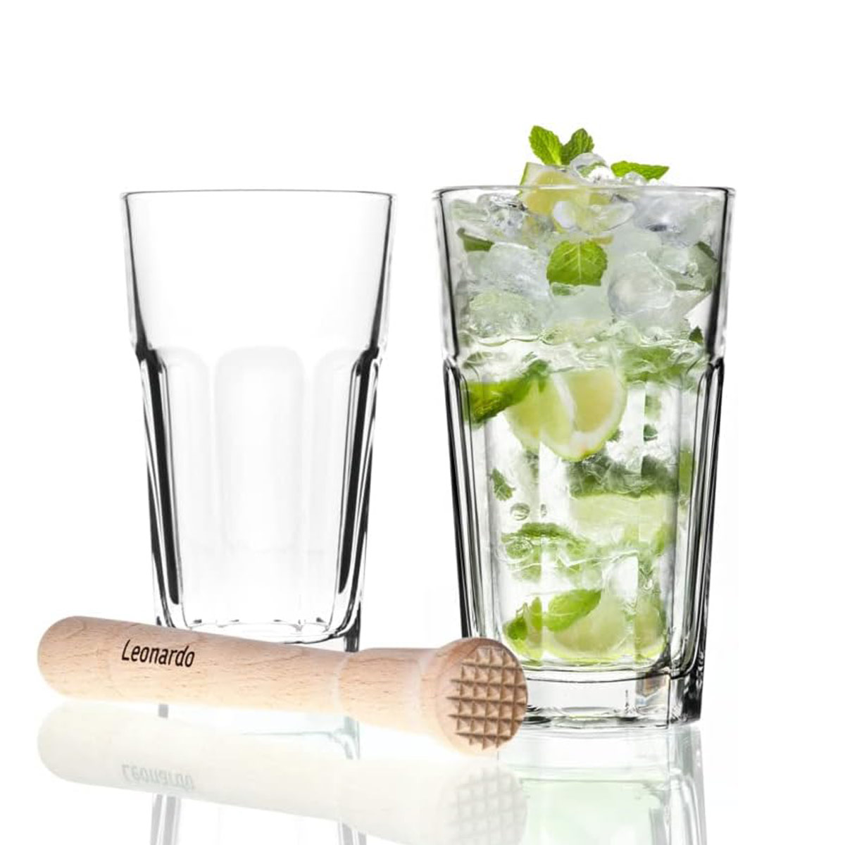 Dieses Set ist ein Must-Have für jeden Cocktail-Liebhaber und wird sicherlich zum Hingucker auf deiner nächsten Party. Verpasse nicht die Gelegenheit, deine Cocktails wie ein Profi zu mixen. Bestelle noch heute unser Cocktailglas-Set mit Holzstößel und genieße köstliche Drinks in deinem eigenen Zuhause! Das Set besteht aus 2 Longrdrinkgläsern und und einem Holzstößel.