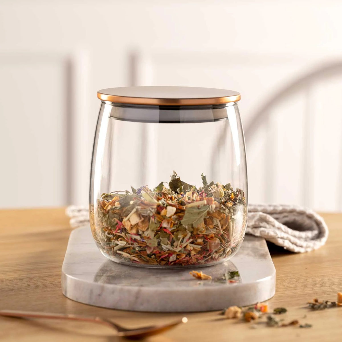Verschließbarer Glasbehälter für Tee & Kräuter