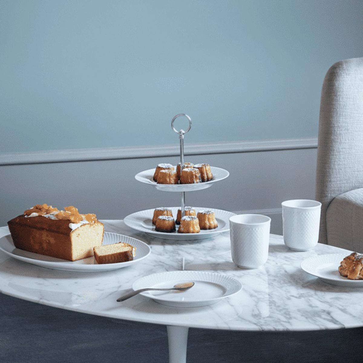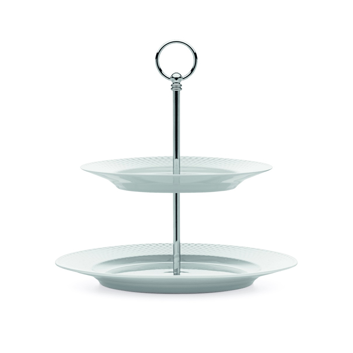 Die Étagère von Lyngby Porcelæn ist mit dem einzigartigen Rhombe-Muster verziert. Die Étagère hat zwei Aufsätze mit einem Durchmesser von 23 cm und 27 cm, die Ihnen viel Platz für kreatives und elegantes Servieren bieten. Das weiße, glänzend glasierte Porzellan eignet sich mit seinem schlichten und klassischen Look sowohl für den täglichen Gebrauch als auch für festliche Anlässe.