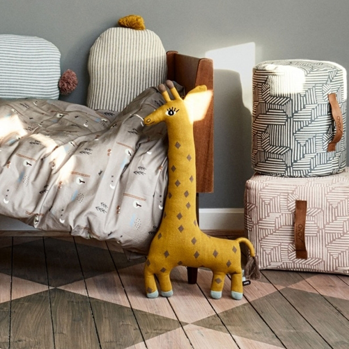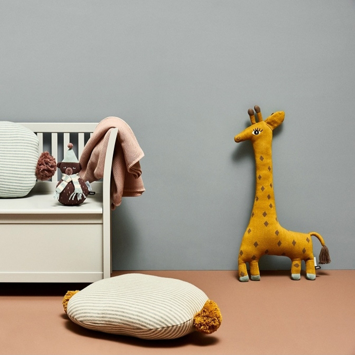 Noah, die Giraffe ist sowohl bezaubernd anzusehen als auch angenehm zum Kuscheln, was sie zum perfekten Accessoire für jedes Kinderzimmer macht. Das Kissen besteht aus Baumwolle und ist mit einer weichen Faserfüllung gefüllt. Zur Reinigung empfiehlt sich das Abwischen mit einem feuchten Tuch - nur punktuelle Reinigung.