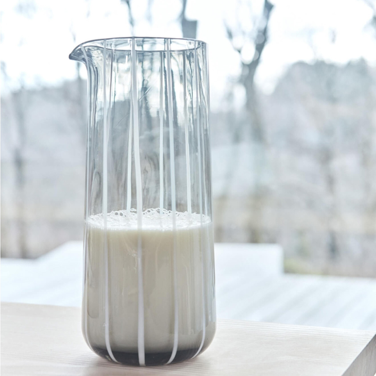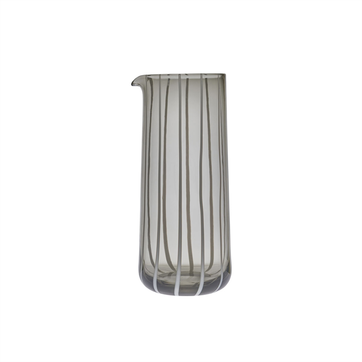 Die Mizu-Serie zeichnet sich durch einen eleganten, anmutigen und modernen Ausdruck aus, der gut in alle Arten von Wohnungen passt. Die wunderschöne Mizu-Wasserkaraffe in Grau ist mundgeblasen und hat wunderschöne gestreifte Details. Aufgrund des ergonomischen Designs liegt die Karaffe angenehm in der Hand.