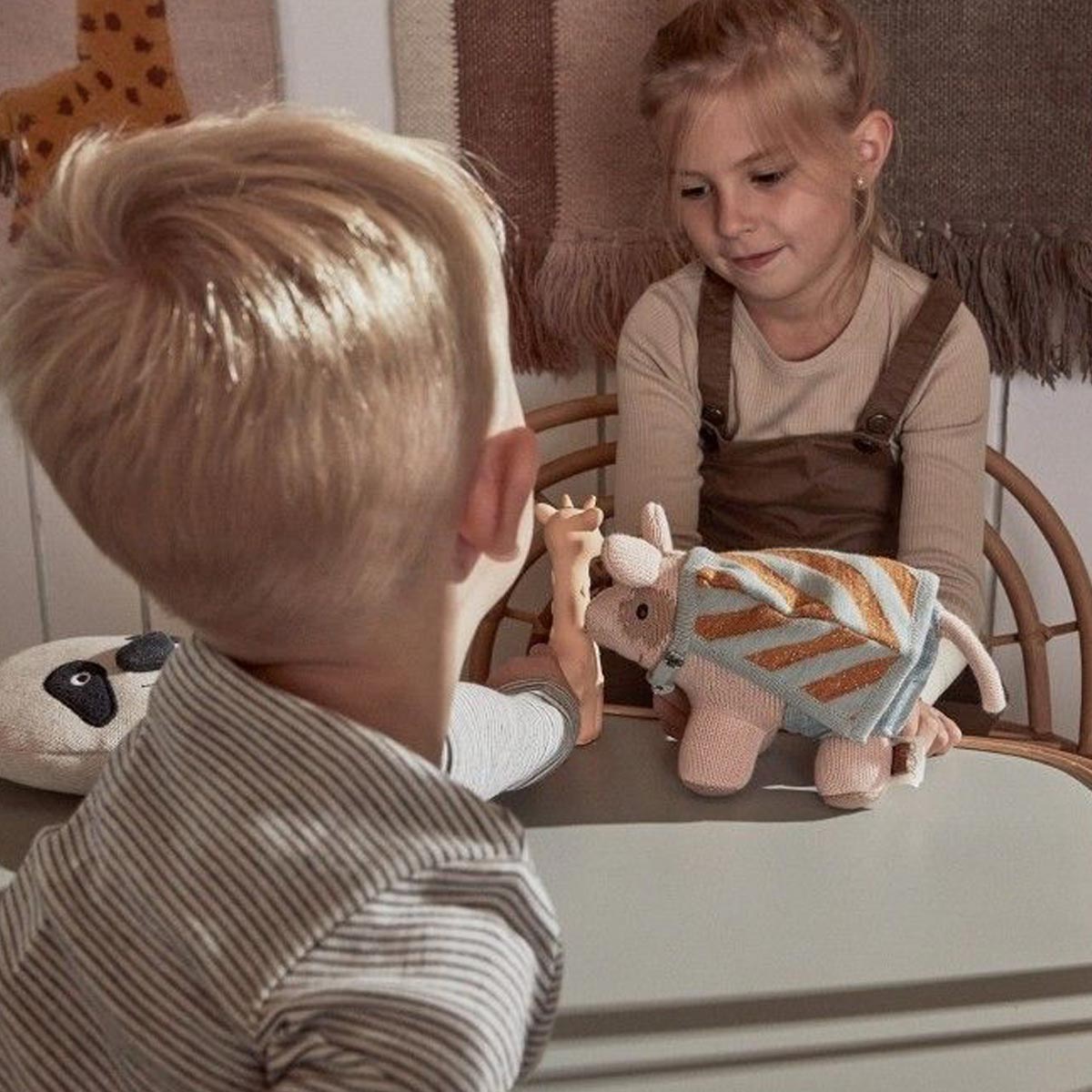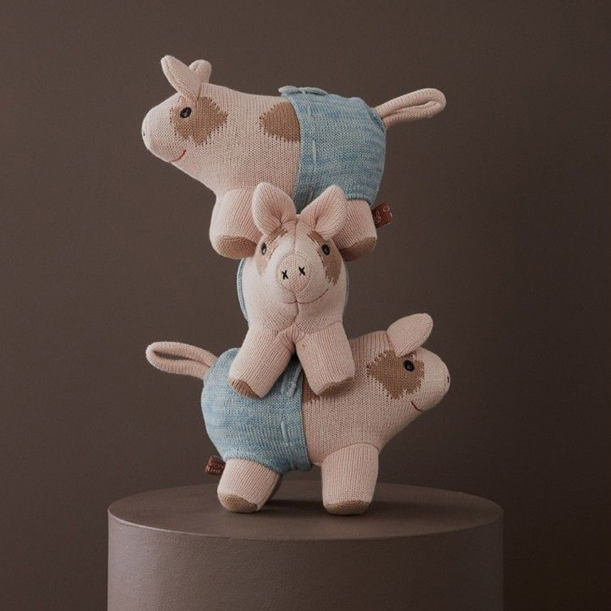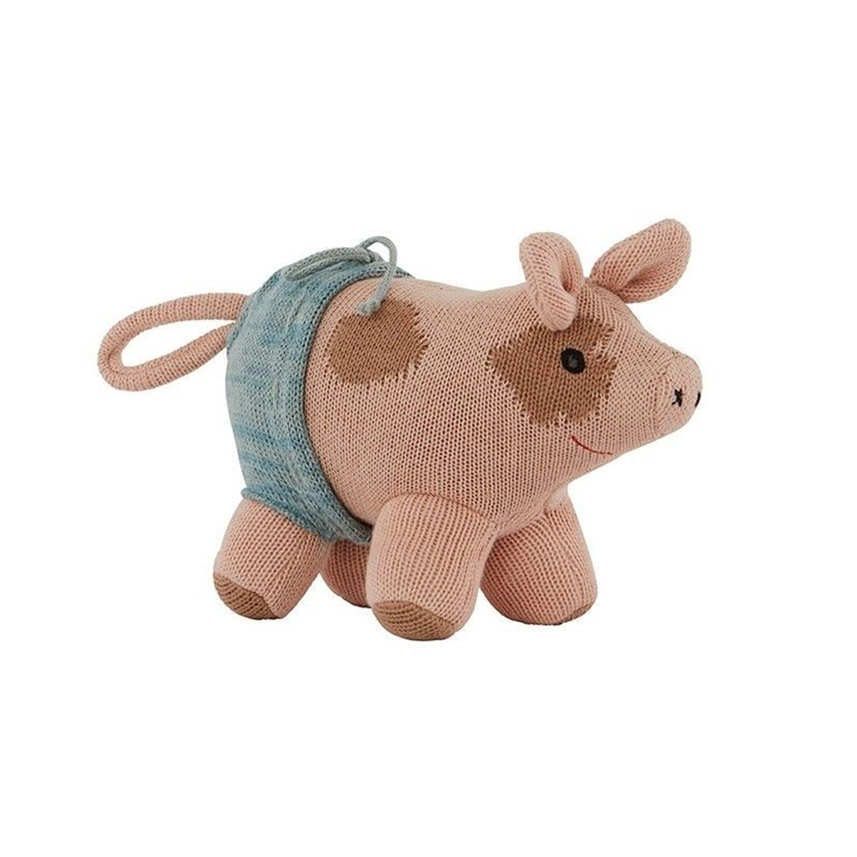 Ferkel Hugo ist der süßeste und weichste Spielgefährte und passt perfekt in jedes Kinderzimmer. Das kleine Schweinchen ist immer zum Spielen oder Kuscheln bereit. Hugo ist aus Baumwolle gestrickt und hat eine weiche Polyesterfüllung.