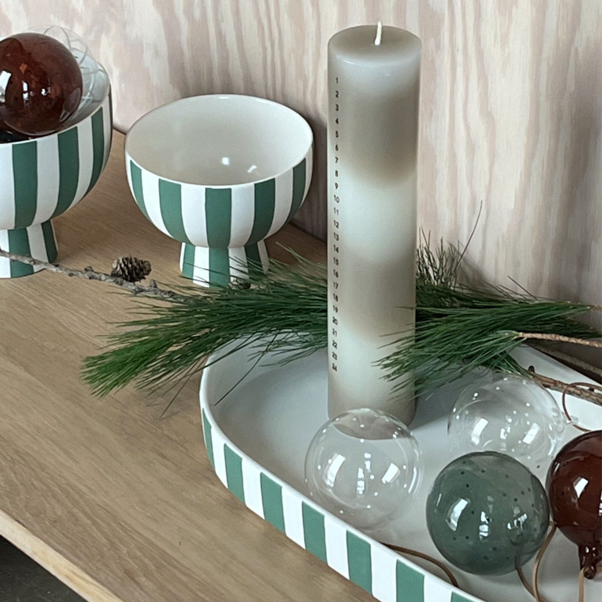 OYOY - Bowl Toppu - Keramikschale im Streifen-Design - Dekoschale auf Fuß