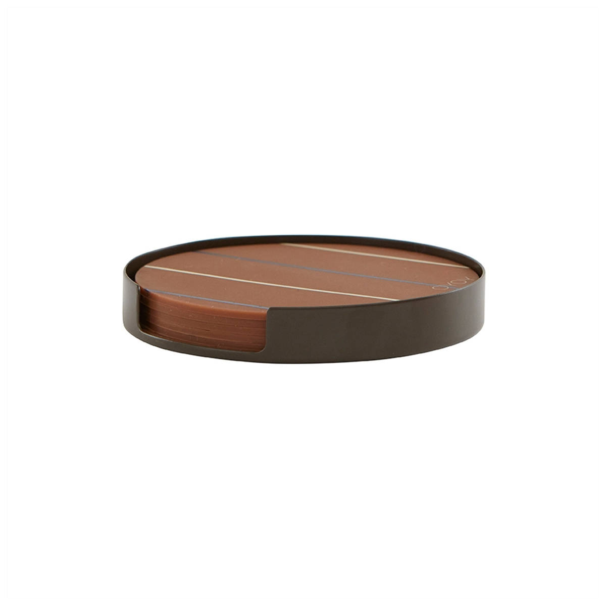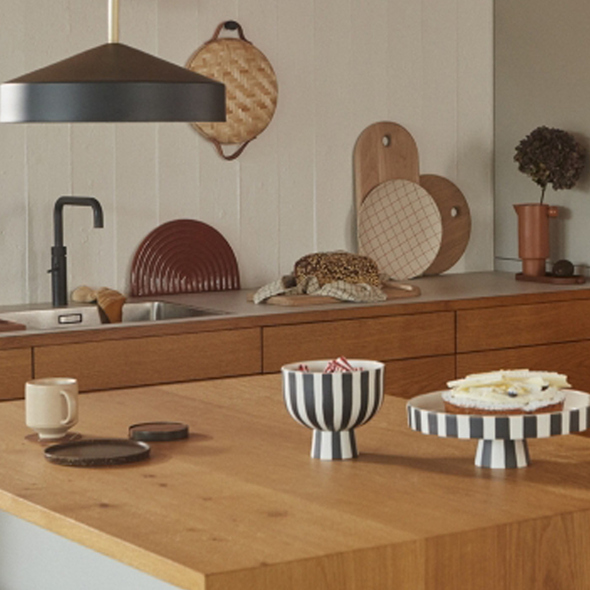 Die Oka Untersetzer sind ein praktisches Element im Alltag und mit dem verspielten Design passen sie gut auf den Tisch. Das Tablett ist aus pulverbeschichtetem Metall und die Untersetzer aus Silikon. Wir empfehlen, sie mit einem feuchten Tuch zu reinigen.