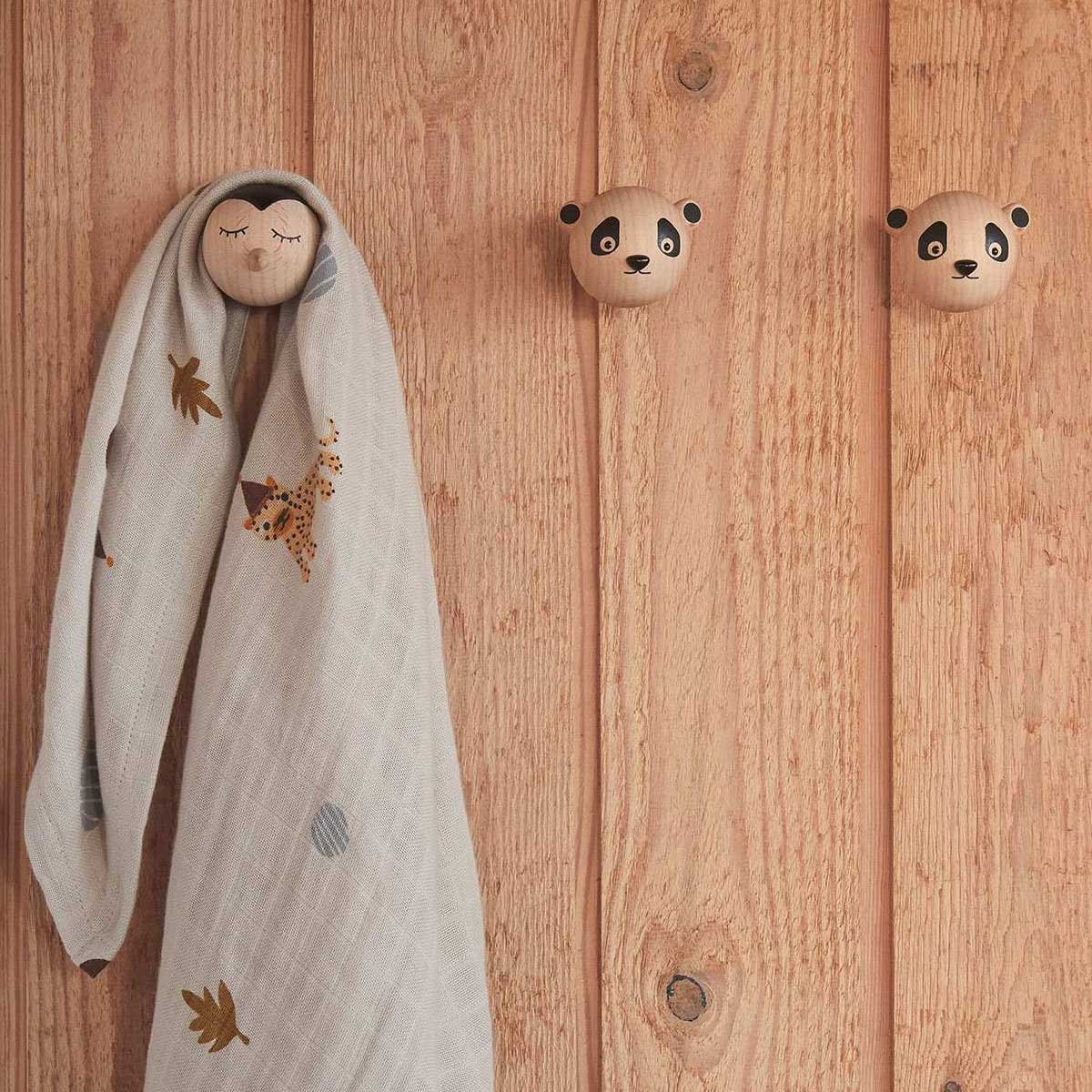 Der Haken besteht aus 100% Buchenholz mit bemalten Details. Zur Reinigung empfiehlt sich das Abwischen mit einem trockenen Tuch.