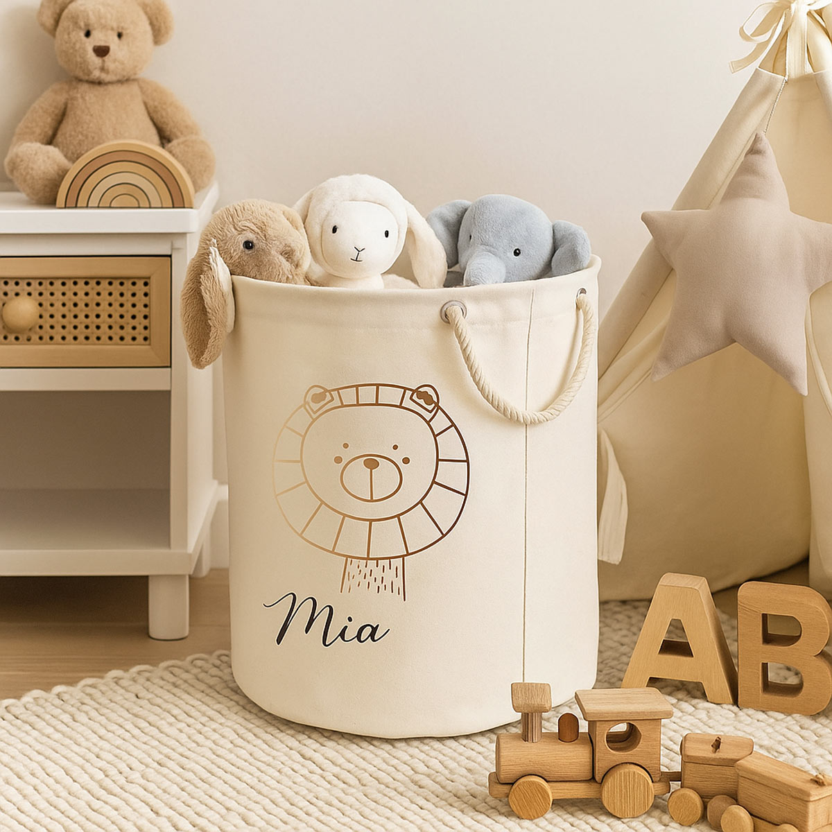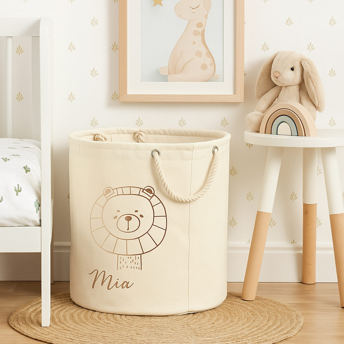 Dieser liebevoll gestaltete Aufbewahrungskorb aus 100% Baumwolle (Canvas) ist die ideale Kombination aus Ordnung und liebevollem Design. Ob Spielzeug, Kuscheltiere, Decken oder Wäsche – der Korb bietet reichlich Platz und sieht dabei dekorativ aus.