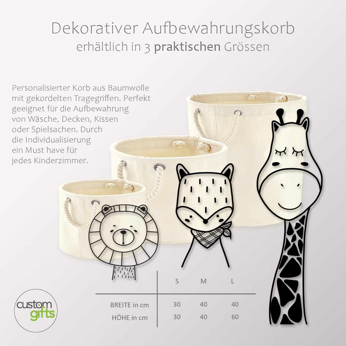 Aufbewahrungskorb für Kinder mit Tiermotiv & Wunschnamen