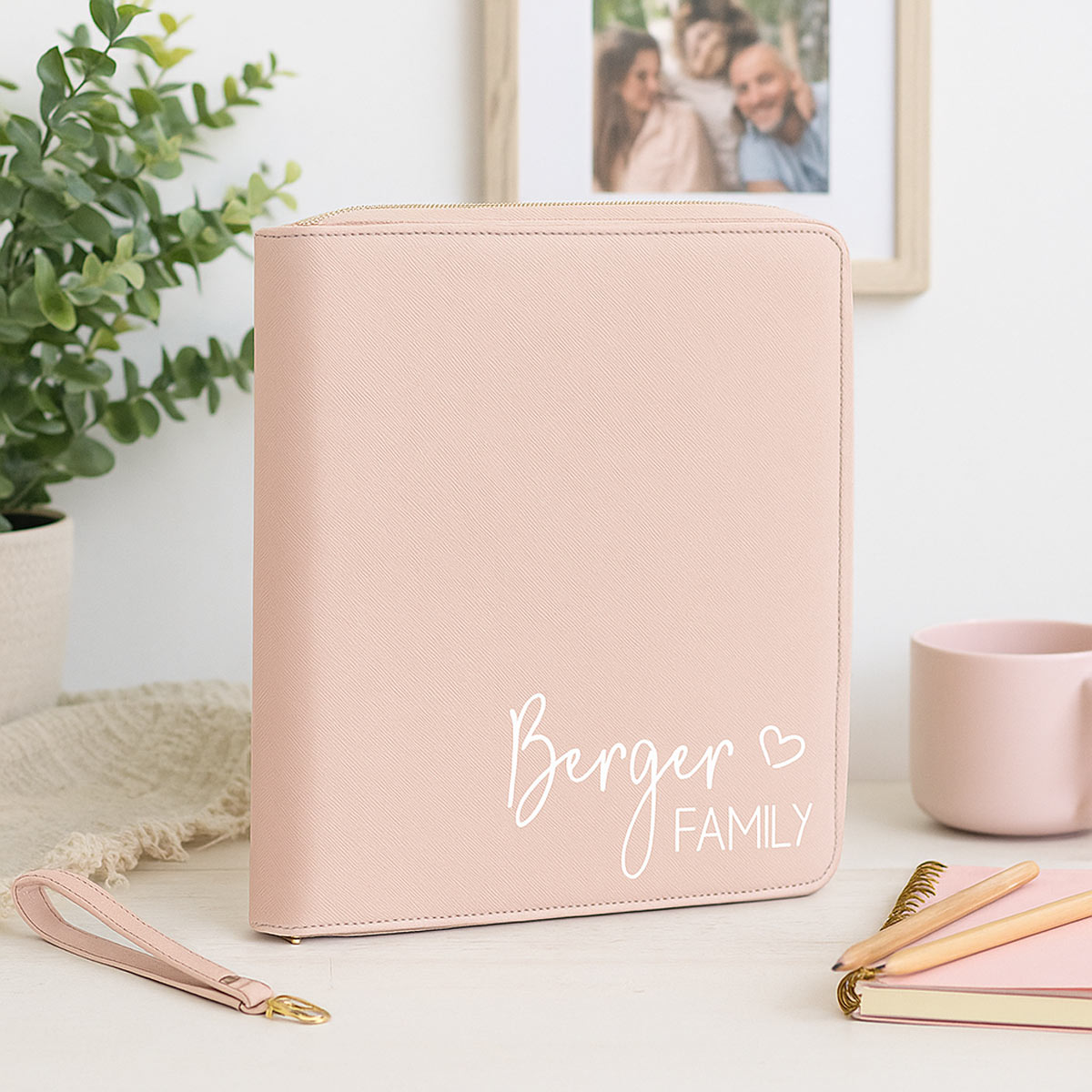 Gestalte Deinen Organizer individuell mit dem Familiennamen in deiner Wunschfarbe. Wähle zwischen zwei Varianten: