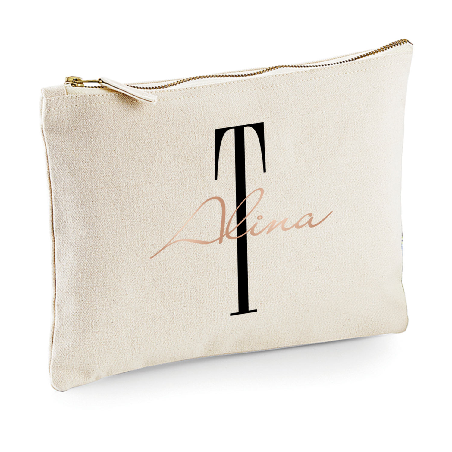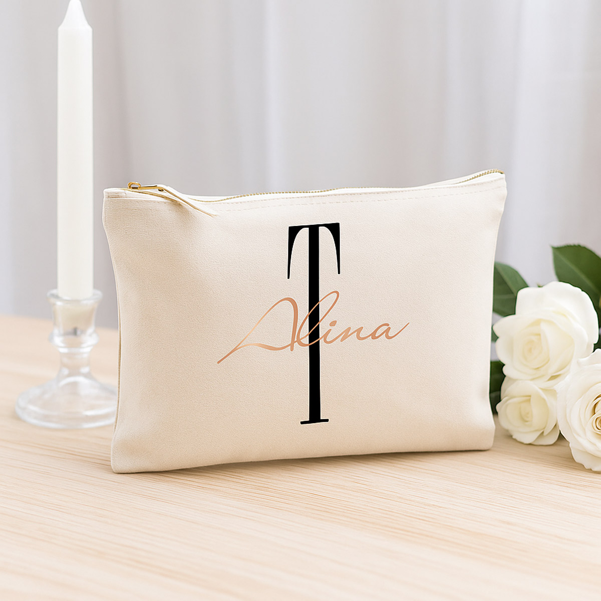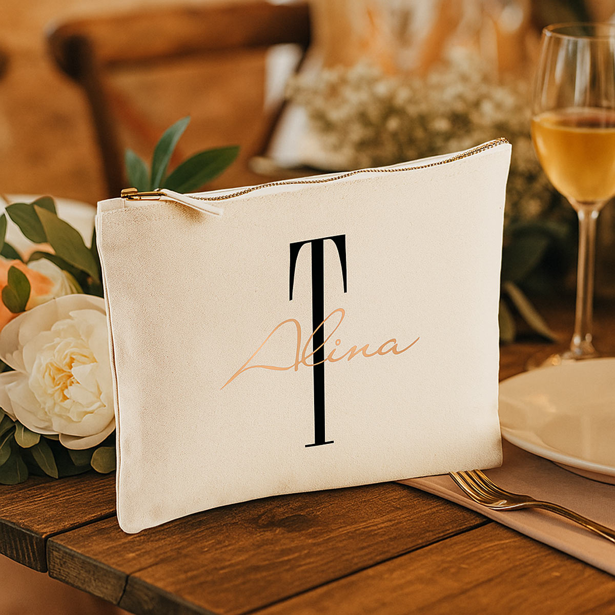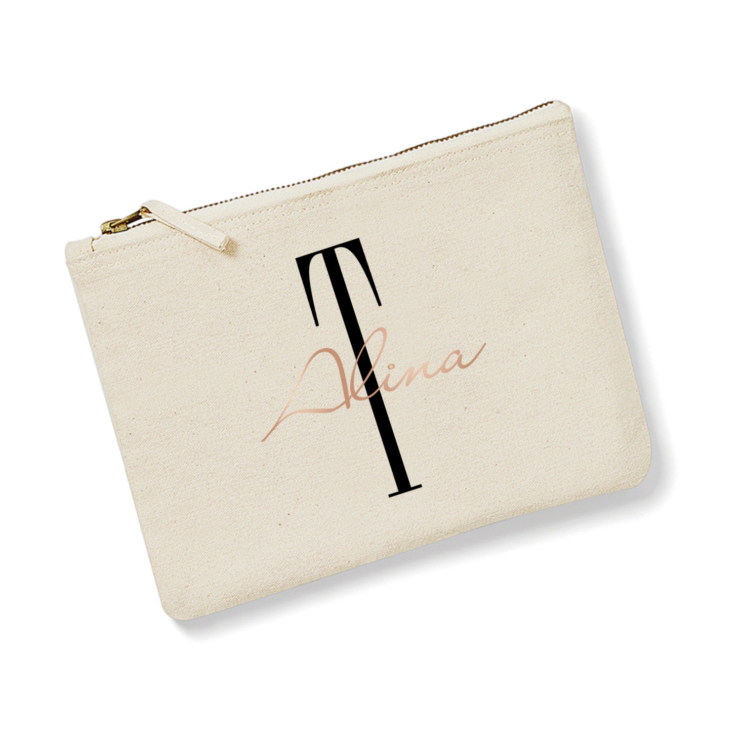 Jedes Täschchen wird individuell mit Initial und Name in Deiner Wunsch-Druckfarbe veredelt – perfekte Geschenkidee für jeden Anlass.
