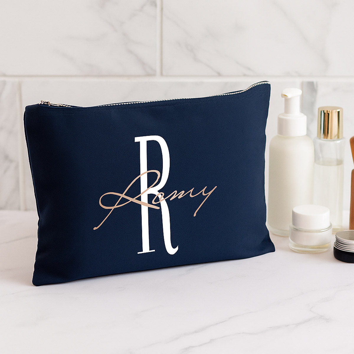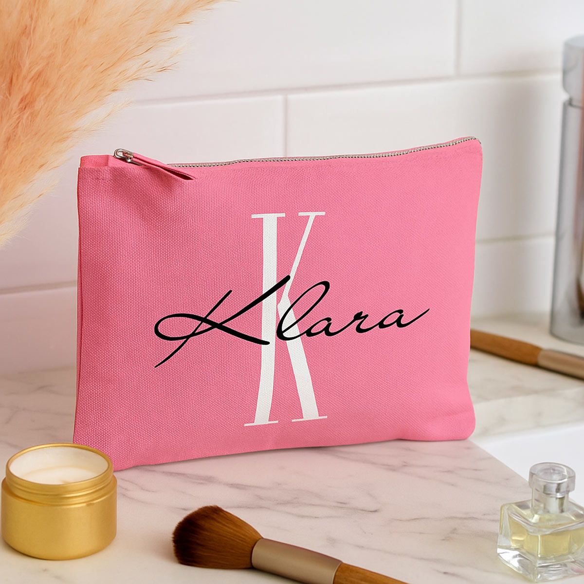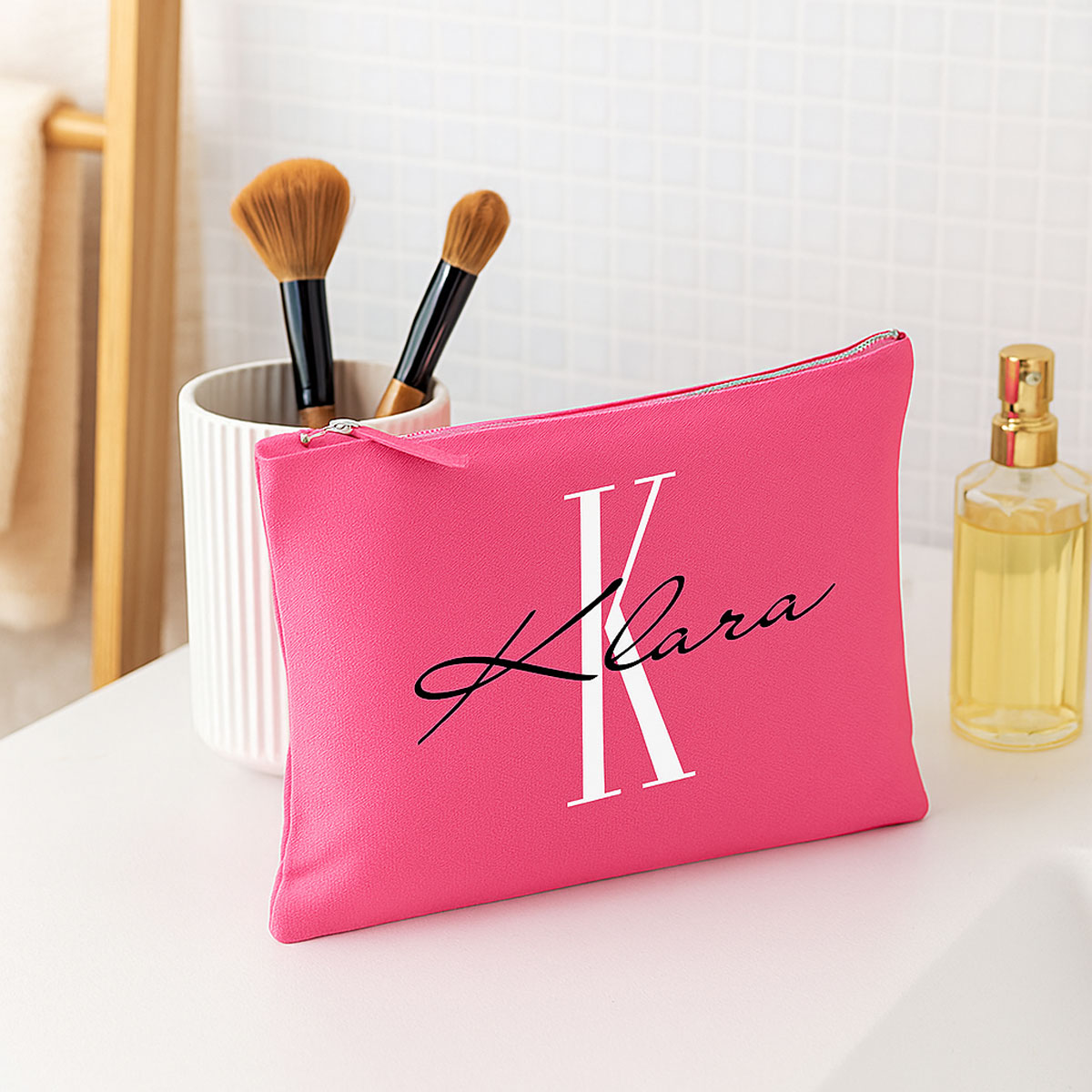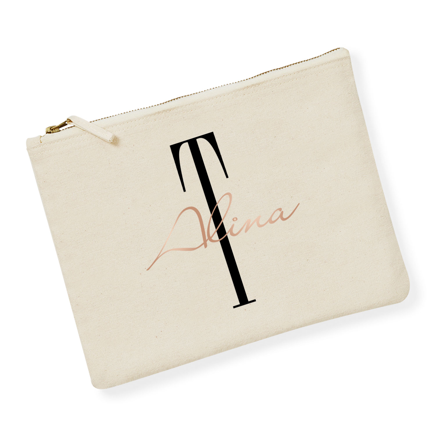Jedes Täschchen wird individuell mit Initial und Name in Deiner Wunsch-Druckfarbe veredelt – perfekte Geschenkidee für jeden Anlass.