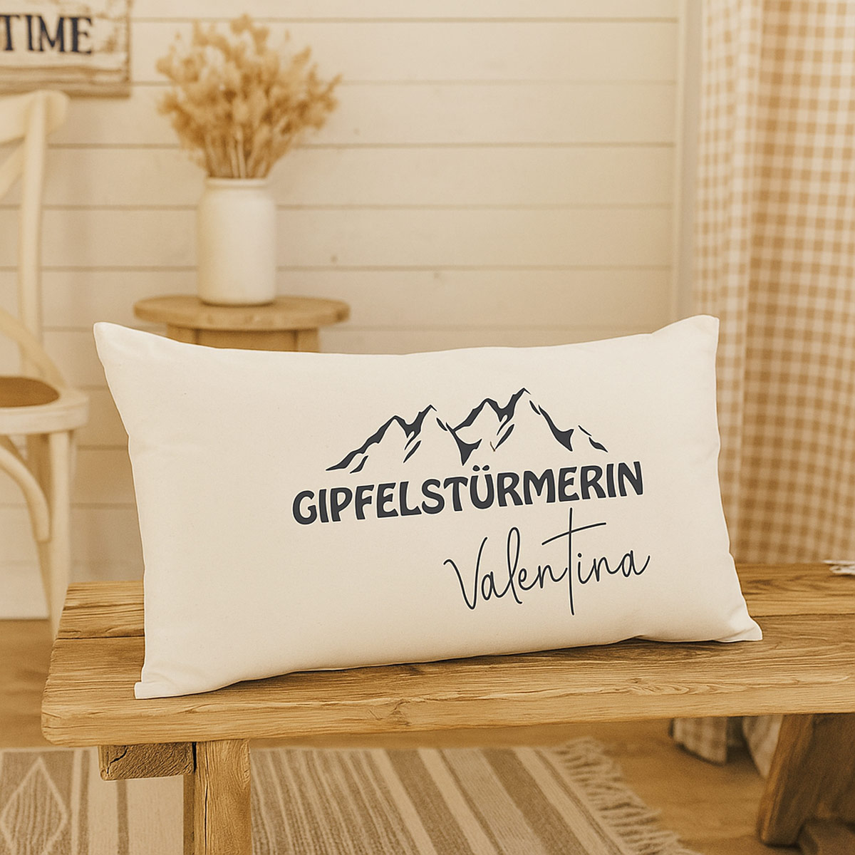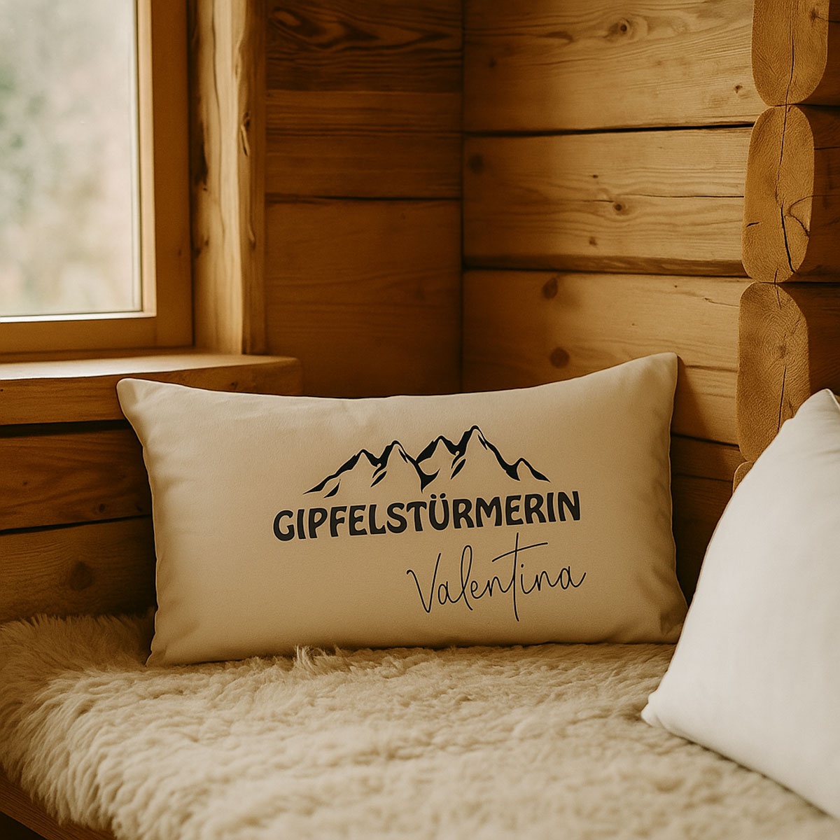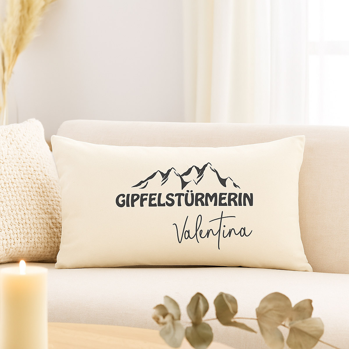 Dieses liebevoll gestaltete personaliserte Kissen "Gipfelstürmer/in" ist das ideale Geschenk für alle, die Berge, Natur und Qualität lieben. Gefertigt aus Fairtrade Baumwolle, überzeugt es durch natürliche Haptik, langlebige Qualität und nachhaltige Produktion.