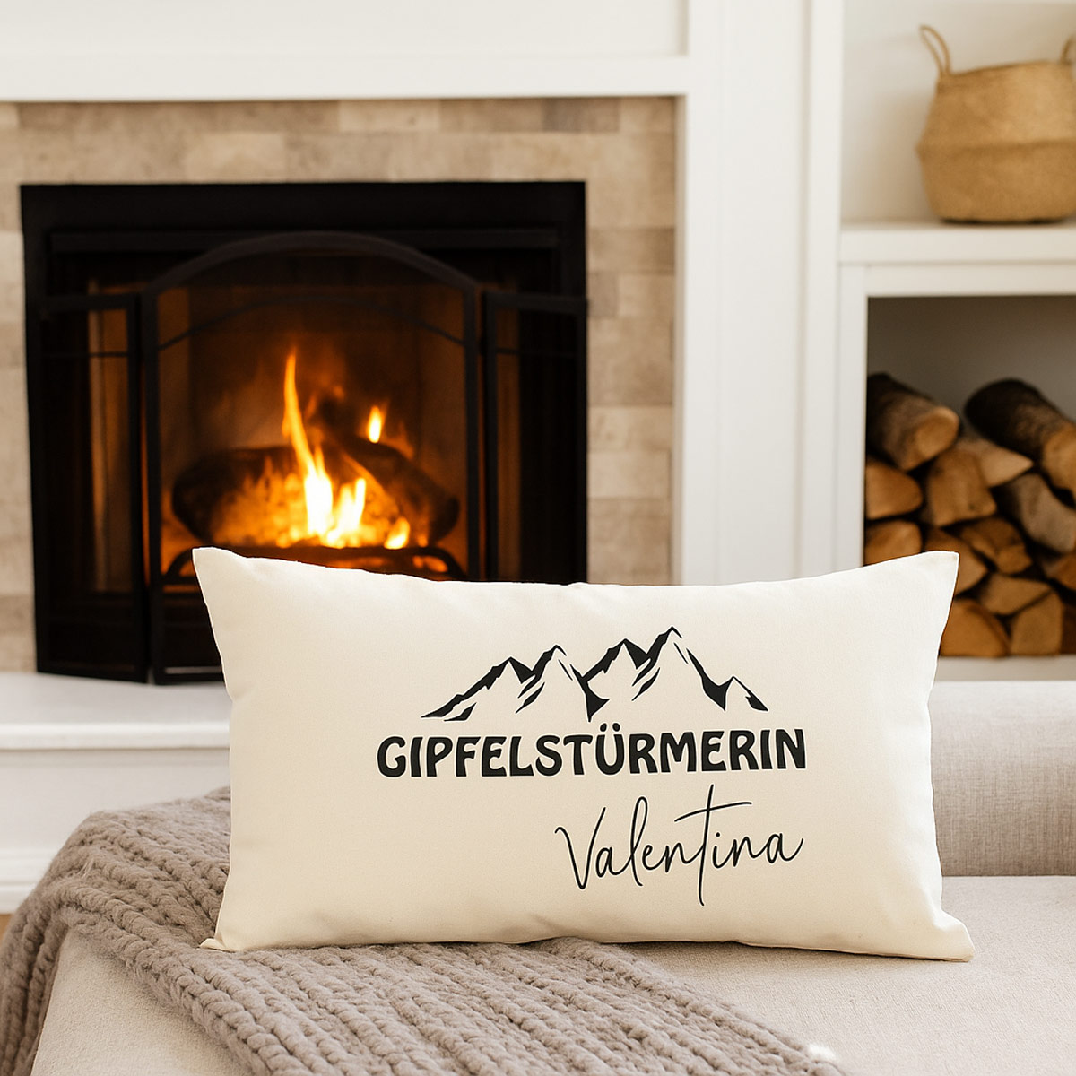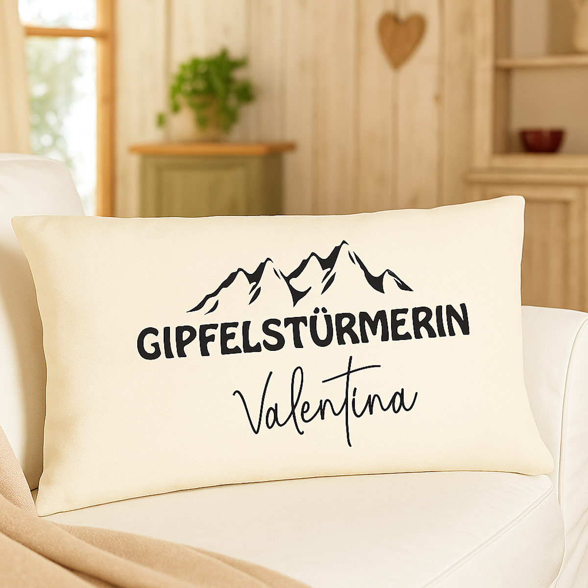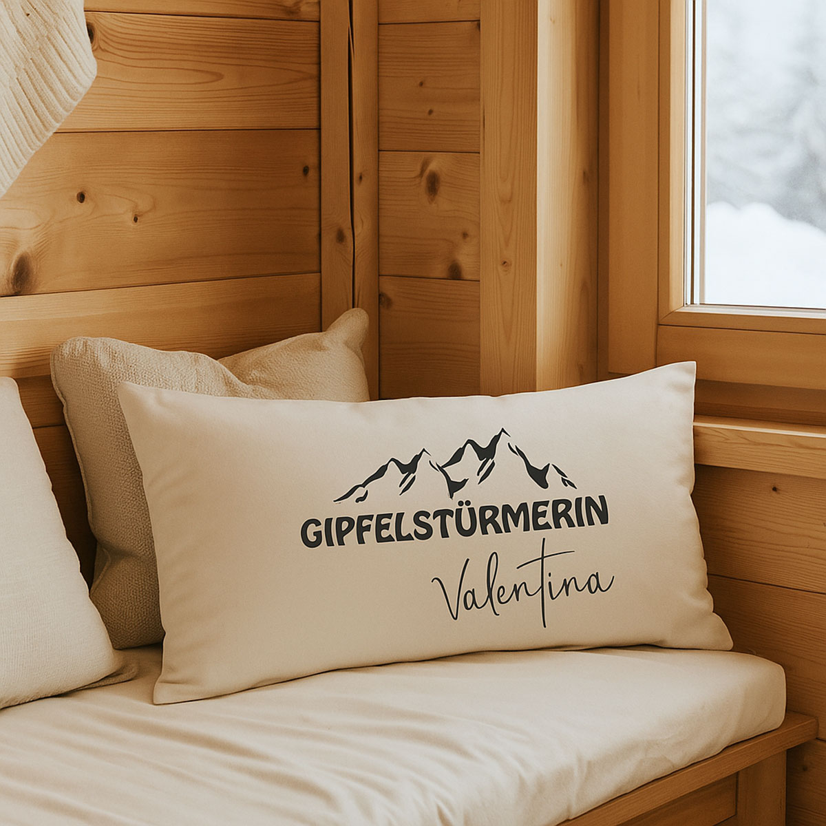 Dieses liebevoll gestaltete personaliserte Kissen "Gipfelstürmer/in" ist das ideale Geschenk für alle, die Berge, Natur und Qualität lieben. Gefertigt aus Fairtrade Baumwolle, überzeugt es durch natürliche Haptik, langlebige Qualität und nachhaltige Produktion.